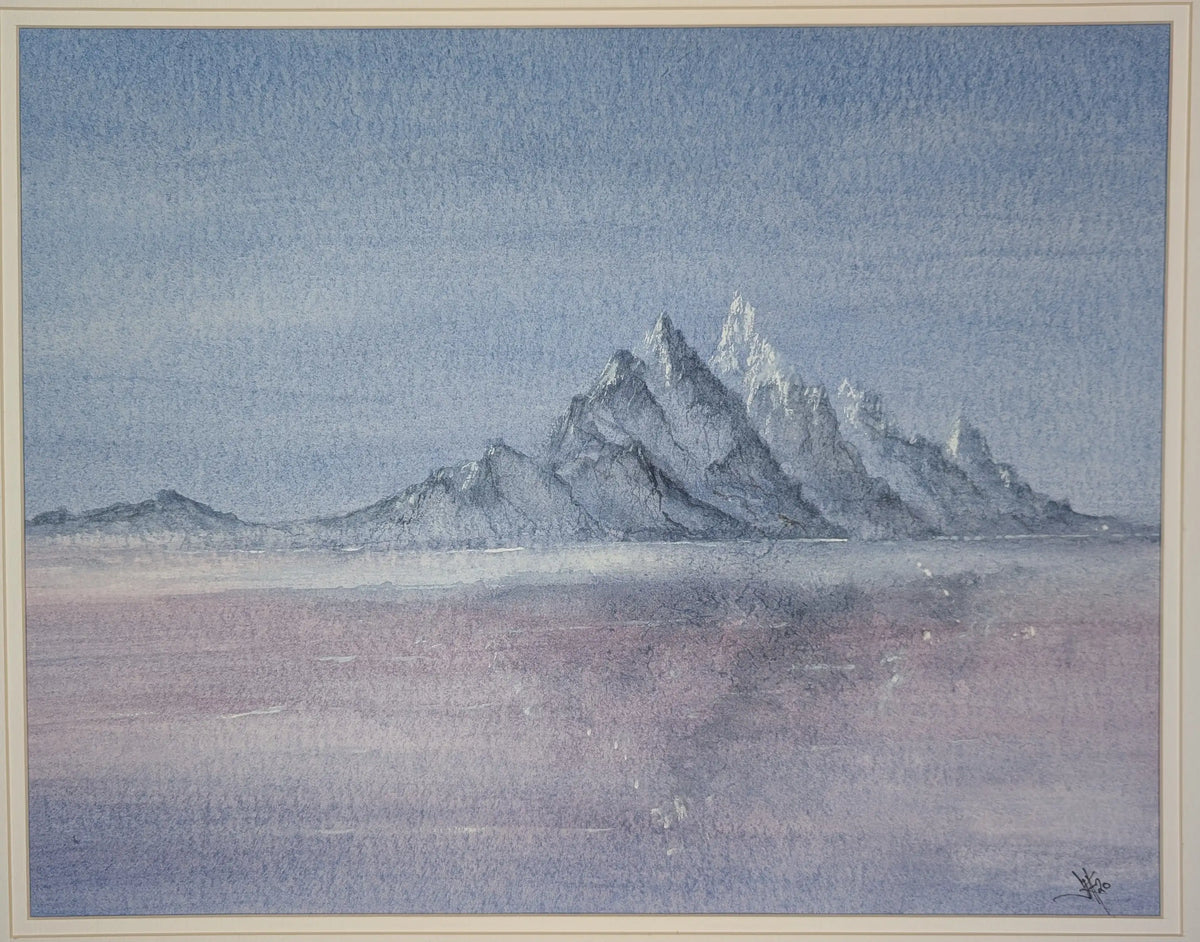 I started painting on postcard-sized paper, and I still do most of the time. I shared an exhibition space with Zara for a month, where I showed a collection of my artwork. I was very nervous exhibiting my art for the first time. I do not know who was more shocked when people complimented me on how my colours matched the mountains perfectly, especially when they found out I was colour blind.