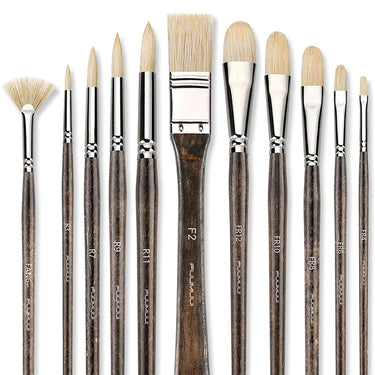 11pcs Professional Natural Hog Bristles Paint Brush Set