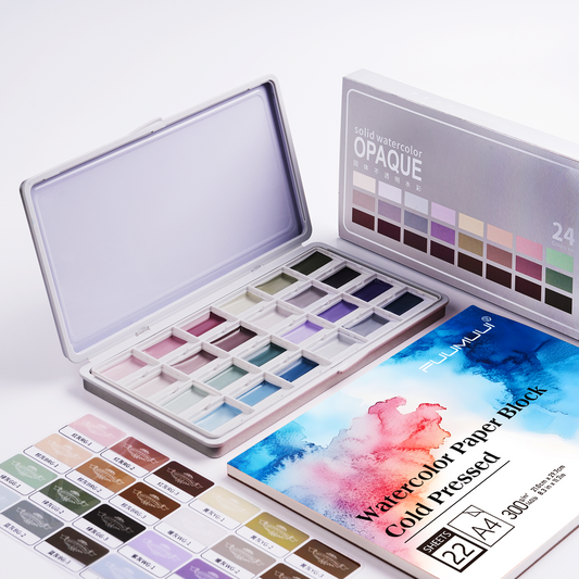 FUUMUUI 24-Color Semi-Solid Opaque Watercolor for Professional Artists