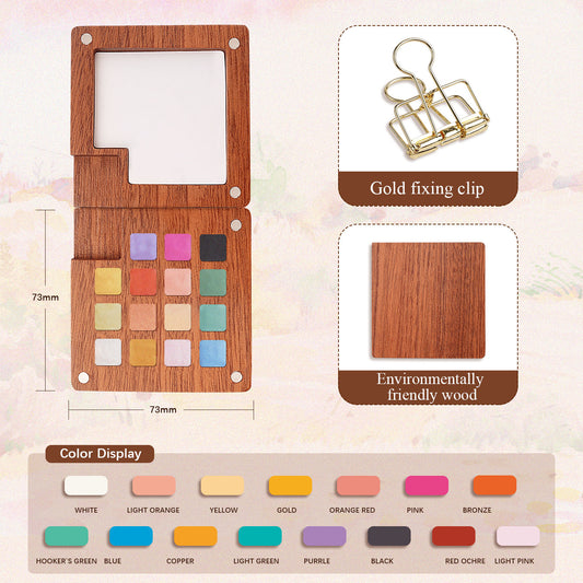 Fuumuui Premium Wood Watercolor Set – 15 Handpicked Colors with Built-in Mixing Palette