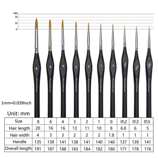 Fuumuui 10pcs Professional Nylon Detail Brushes