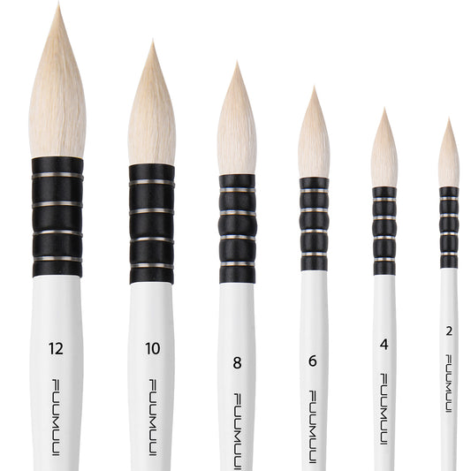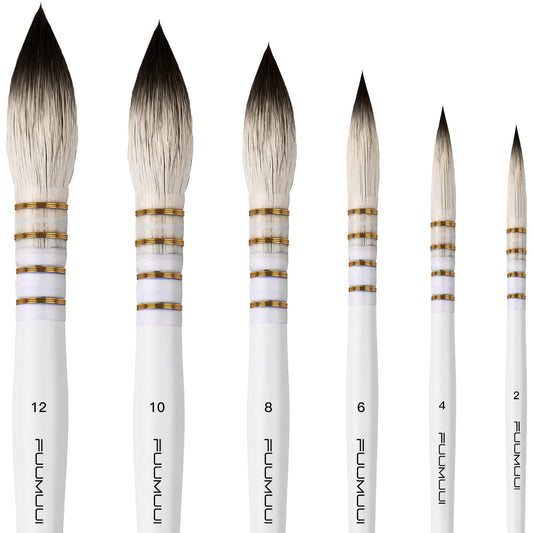 Fuumuui 6pcs Professional Watercolor Brushes - Round Mop, Dagger Striper