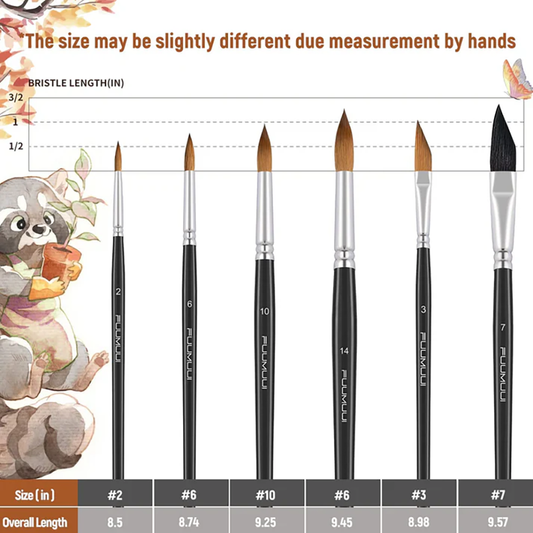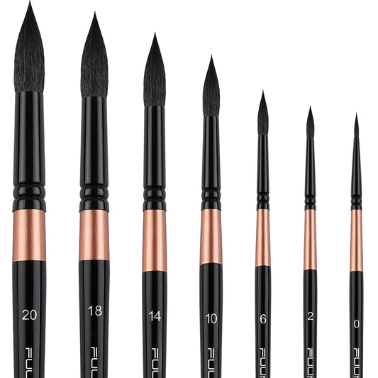 Fuumuui 7pcs Professional Sable Watercolor Brushes