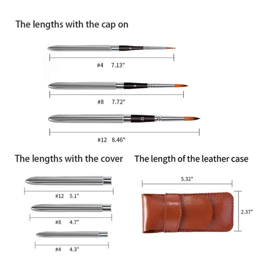 Fuumuui 3pcs Sable Travel Watercolor Brushes