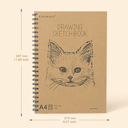 FUUMUUI A4 Spiral Sketchbook – 180° Lay-Flat, Acid-Free Paper for Graphite, Charcoal, Colored & Watercolor Pencils