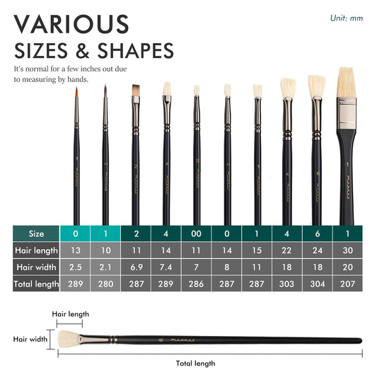 Fuumuui's oil art brushes are available in various bristle types, each offering distinct advantages for oil paint brushes applications: