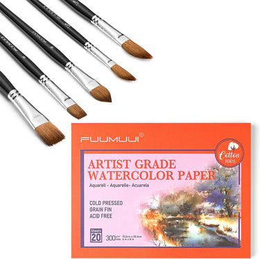 Fuumuui Professional Sable Watercolor Brushes with 20 Sheets 5.8" x 8.3" Watercolor Paper Pad