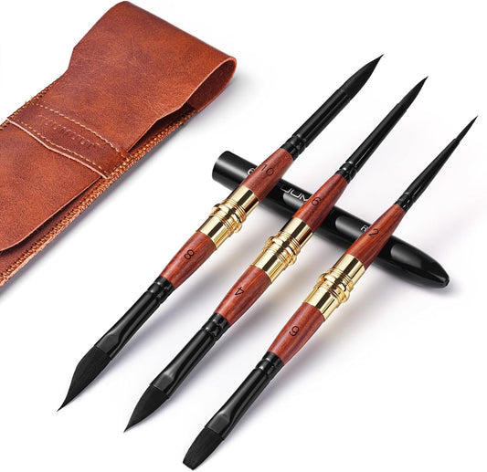 Fuumuui 3pcs Sable Travel Watercolor Brushes