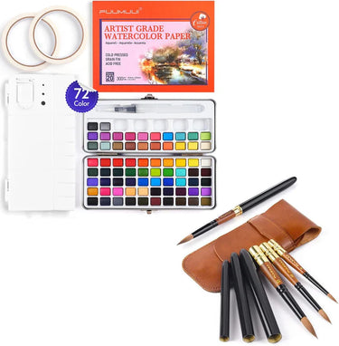 • 【Alles, was Sie brauchen, in einem Premium-Set】 Genießen Sie den Komfort, alle notwendigen Werkzeuge für die Erstellung atemberaubender Aquarellgemälde in einem umfassenden Set zu haben. Zusätzlich zu 72 lebendigen Farben enthält dieses Premium-Farbset 20 Blatt hochwertiges Aquarellpapier aus 100 % Baumwolle (5,8 " x 8,3 ", kaltgepresst), einen Pinselstift, zwei Künstler-Abdeckbänder und eine Aquarellpalette. Entdecken Sie alle Ihre kreativen Utensilien, die bequem für die mühelose Herstellung von Meisterwerken zusammengestellt wurden.