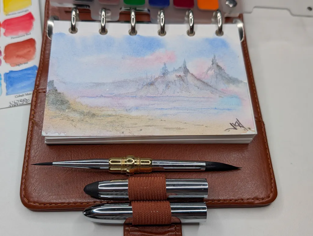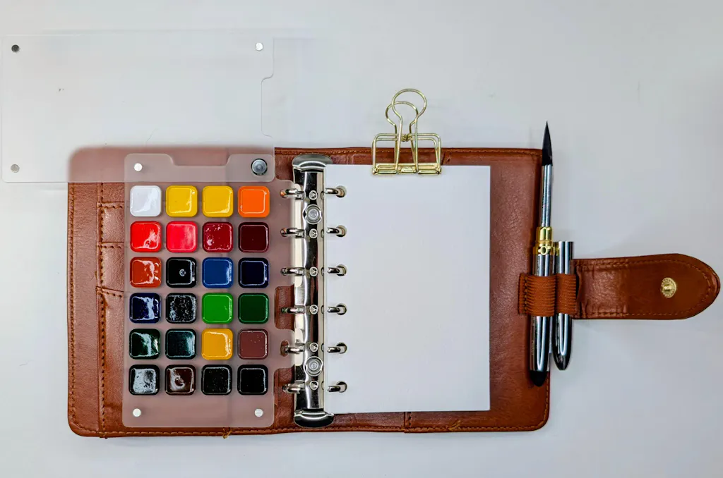 Fuumuui Set de Viaje para Acuarela – Pincel de Viaje de Doble Punta, Pinturas y Papel 100% Algodón con Cubierta de Cuero PU (Mediano)