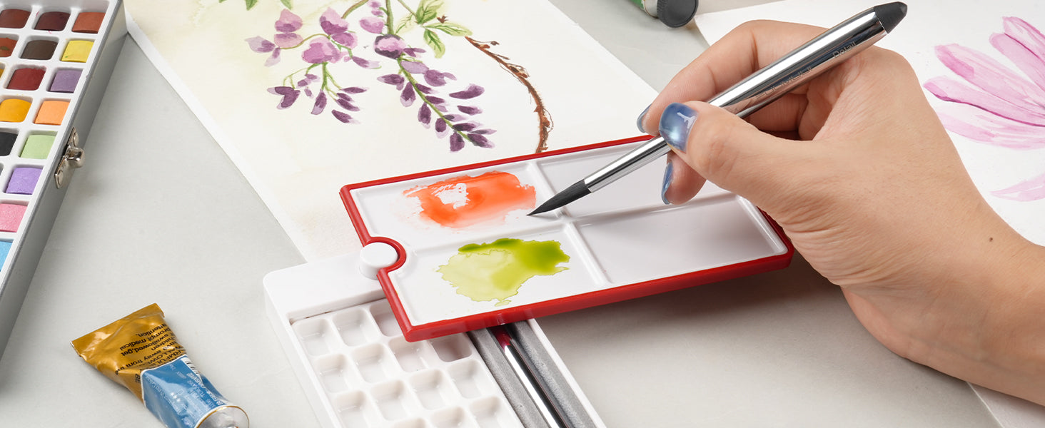 Whether you're a traveling urban sketcher or a minimalist studio painter, this palette offers everything you need in a compact, vibrant package. The vivid red lid adds a pop of color to your toolkit and makes it easy to spot in your bag or among your supplies.