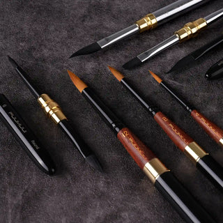 Polyvalence dans tous les médiums : Nos ensembles de pinceaux de voyage sont vos compagnons fiables, que ce soit pour la gouache, les aquarelles, les acryliques ou les encres. En particulier, nos pinceaux de voyage pour aquarelle sont réputés pour leur capacité à retenir une grande quantité d'eau et de pigment, ce qui les rend idéaux pour des détails précis et des lavis lumineux lors de la peinture sur le motif.
