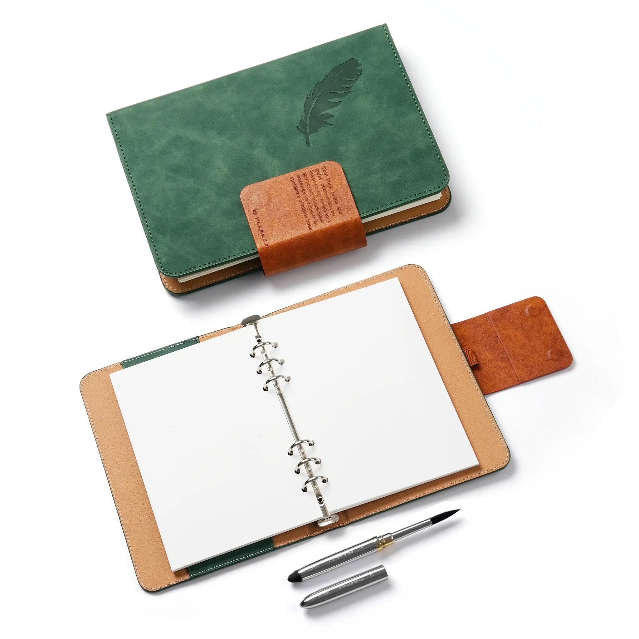 Fuumuui Suede Leather Watercolor Loose-Leaf Sketchbook with A Round Travel Brush