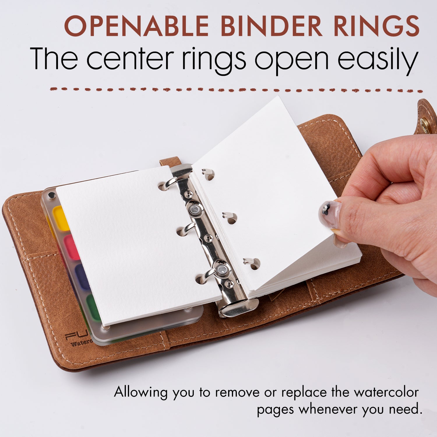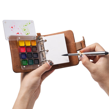 Fuumuui Ensemble de Voyage pour Aquarelle – Pinceau de Voyage Double, Peintures et Papier 100% Coton avec Couverture en Cuir PU (Petit)