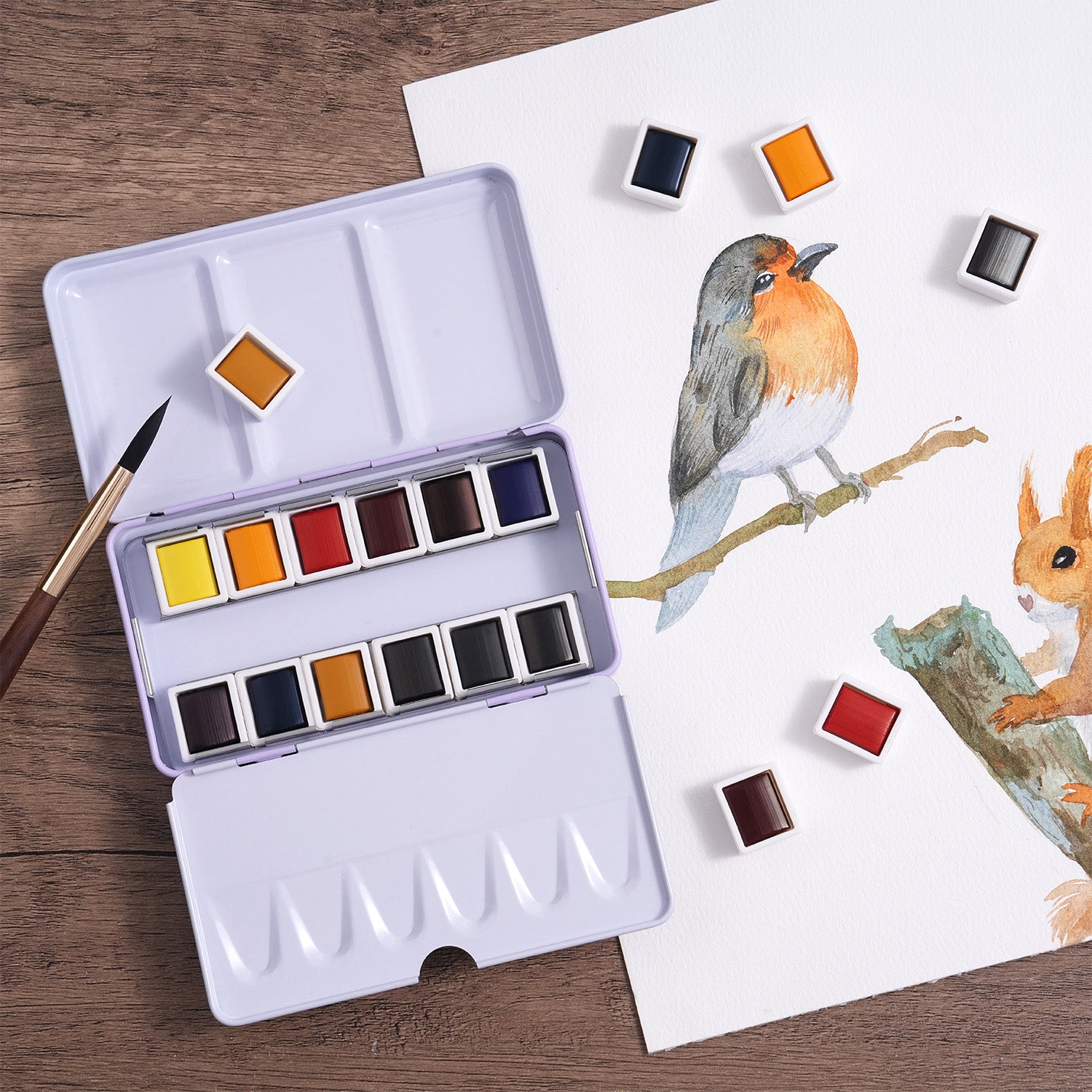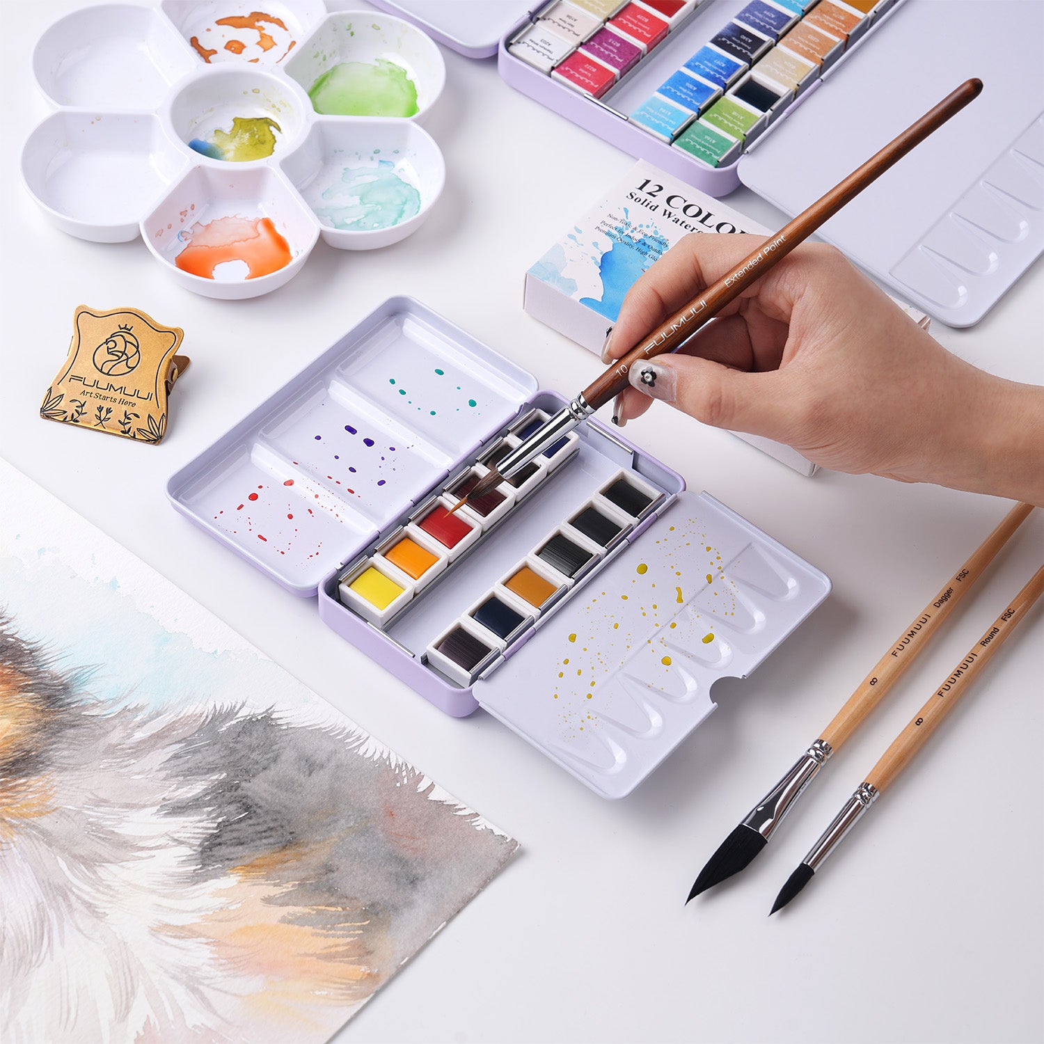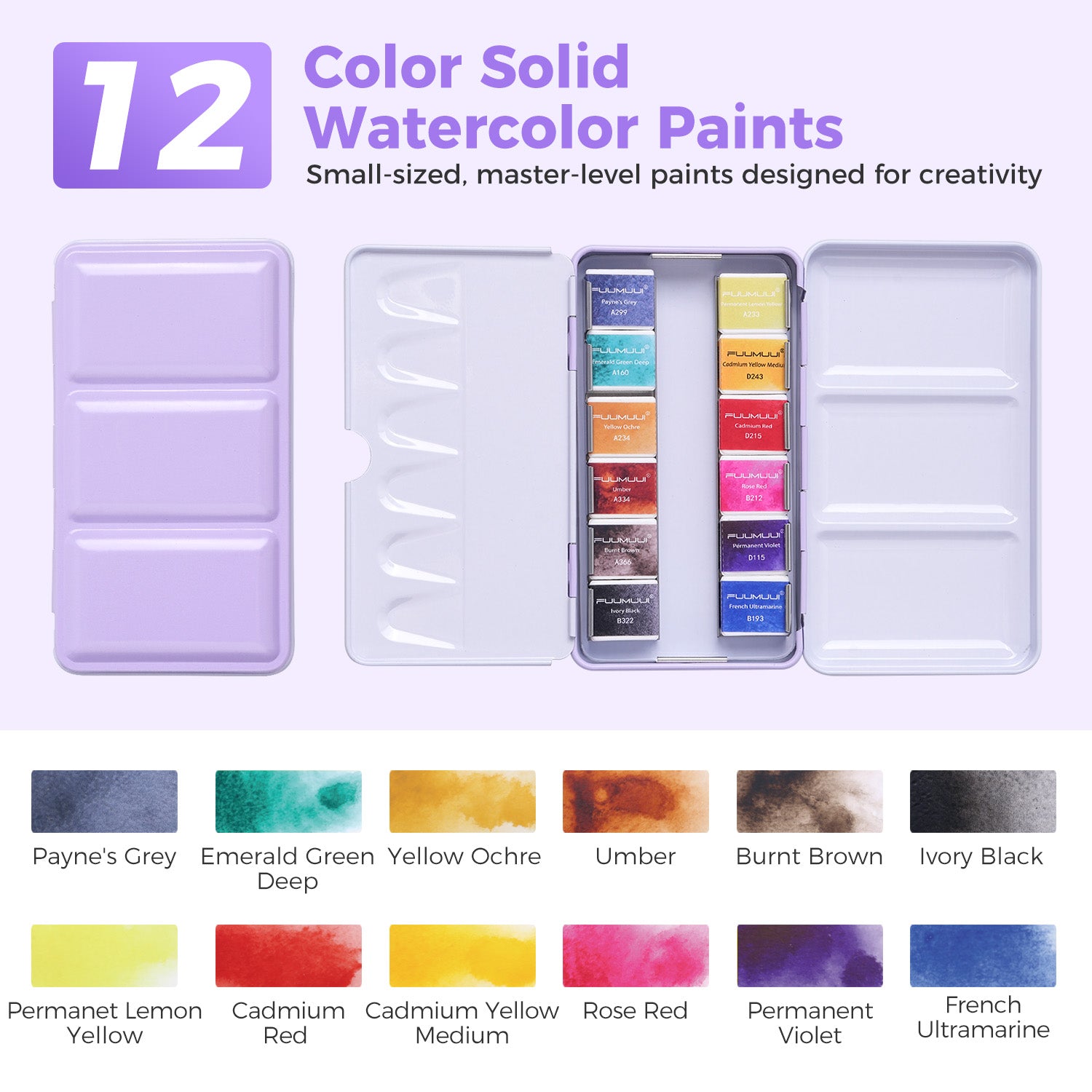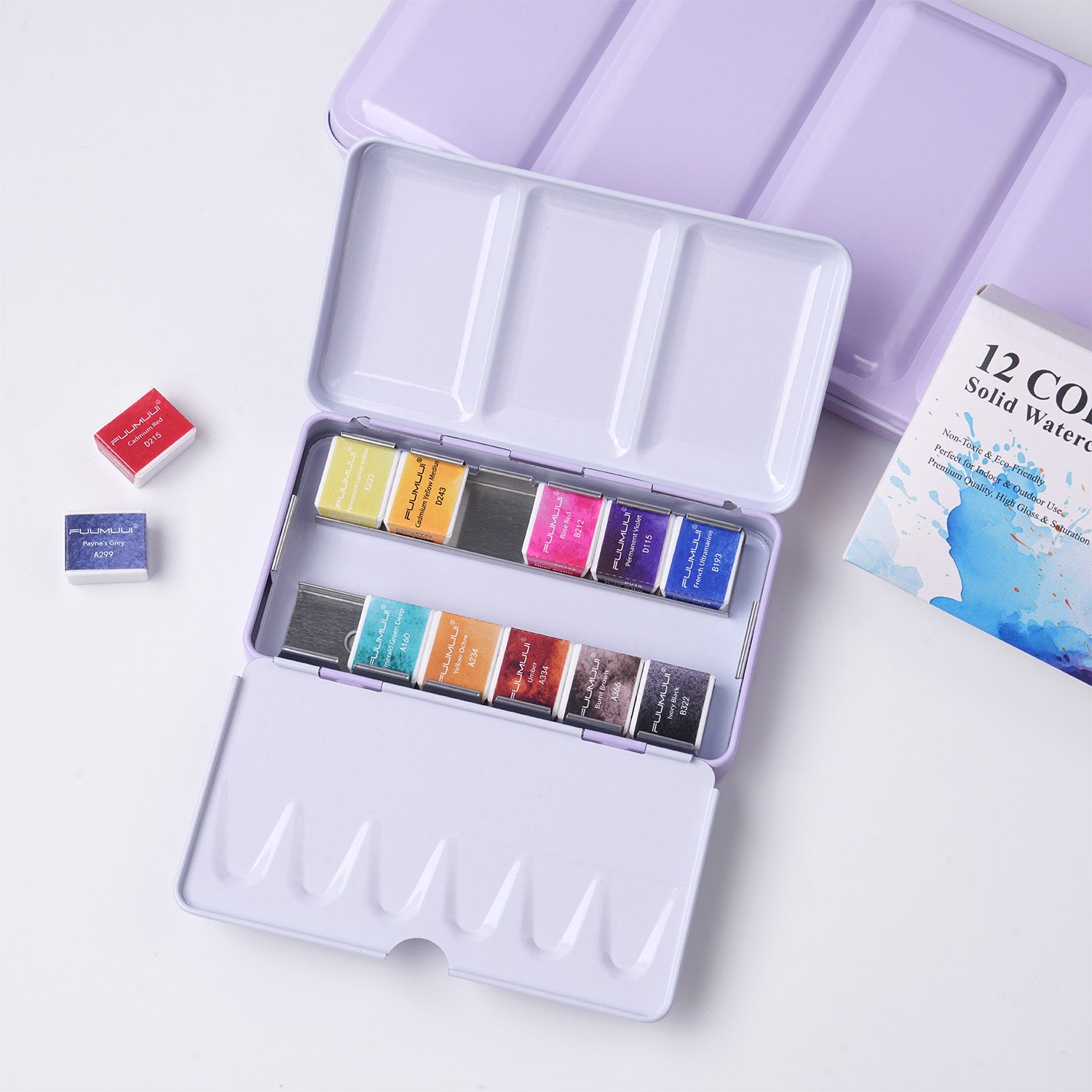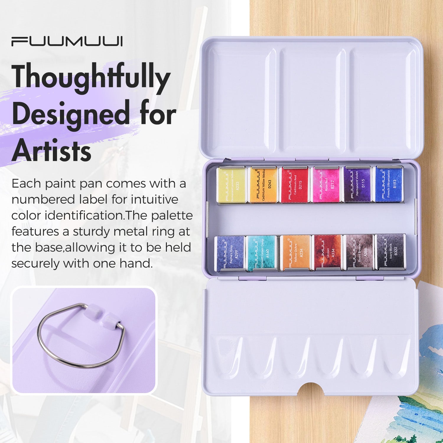 L'ensemble portable de peinture aquarelle de qualité supérieure 12 couleurs Fuumuui convient au croquis en extérieur et à la peinture en intérieur