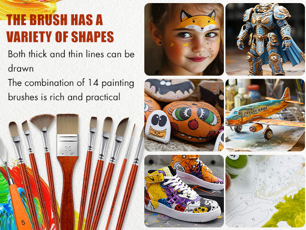 Fuumuui 14 pennelli professionali in nylon per acrilico con spatola