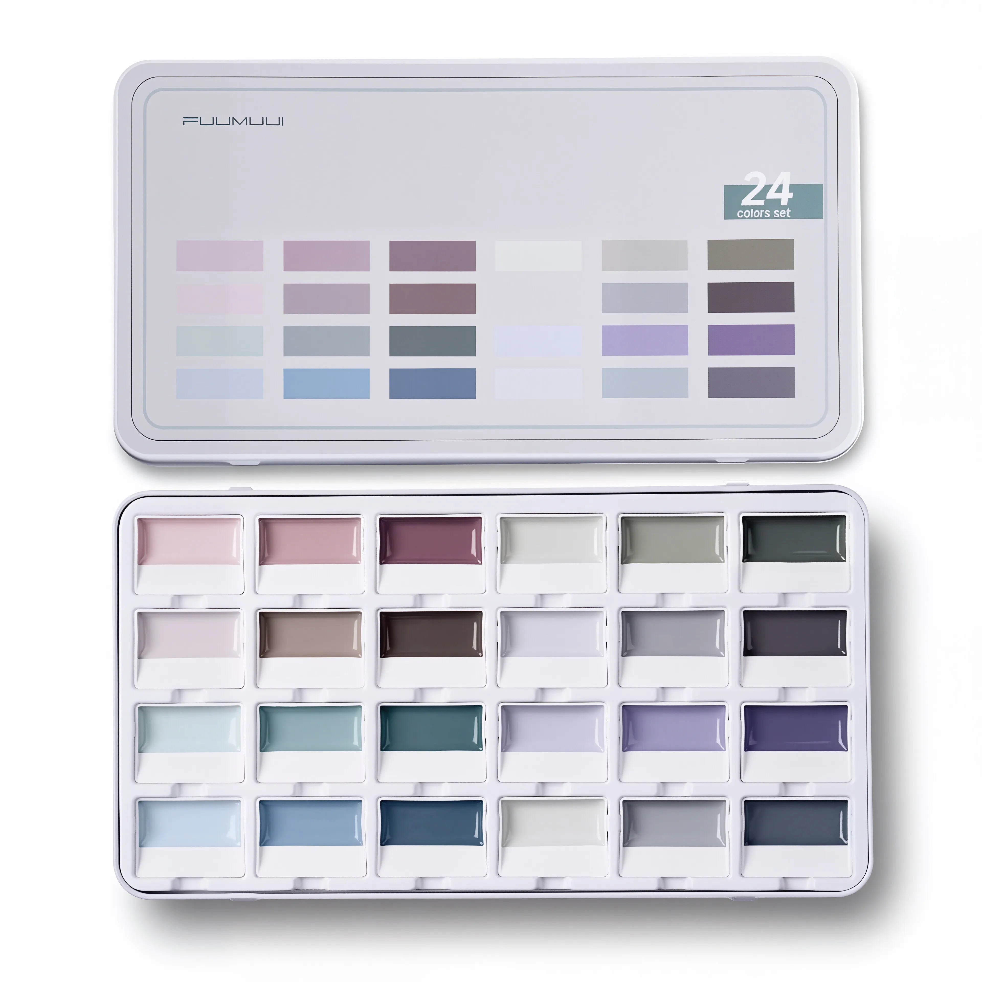 Fuumuui Set di acquerelli semi-solidi opachi da 24 colori - Colori tenui