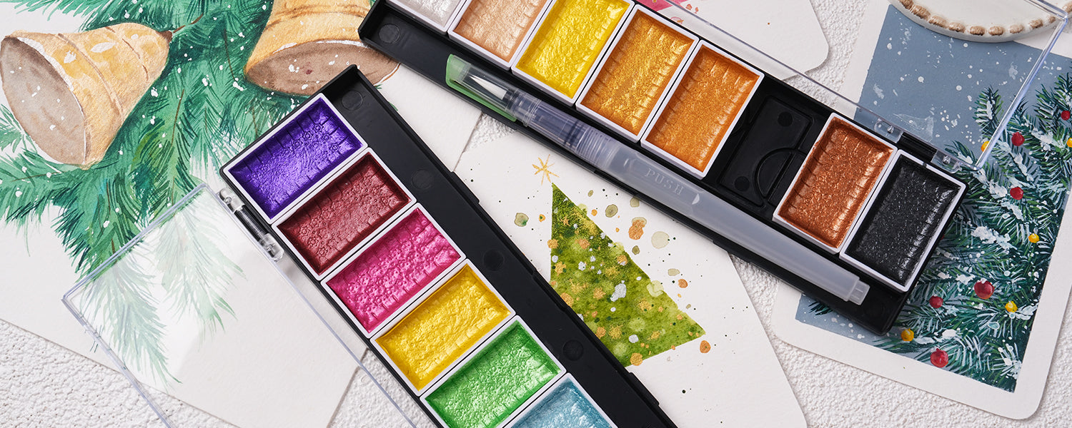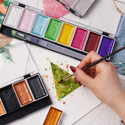 Fuumuui Set di pigmenti perlati ad alte prestazioni a 8 colori per acquerello, due set