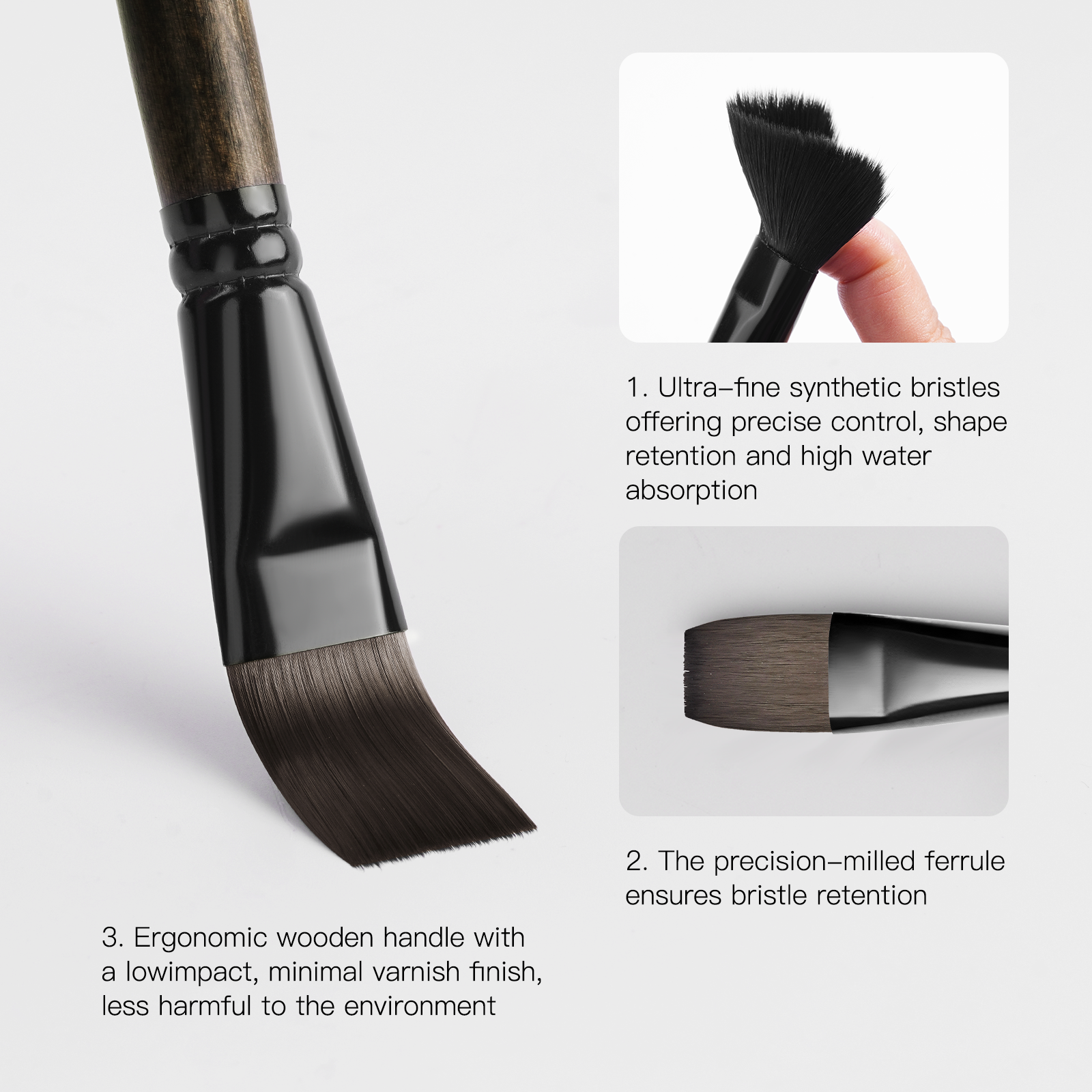 We are proud to confirm that the wooden handles used in our brush sets are crafted from FSC®-certified wood. This ensures that every stroke you take is supported by wood sourced from responsibly managed forests that provide environmental, social, and economic benefits.