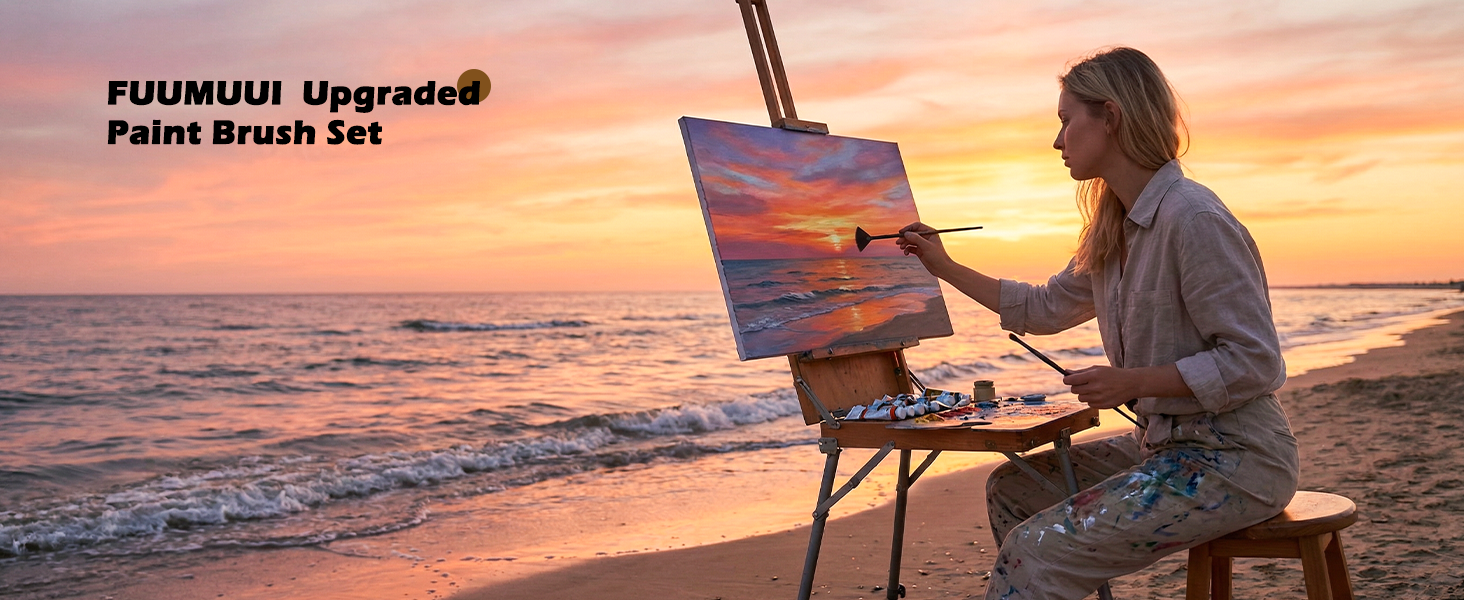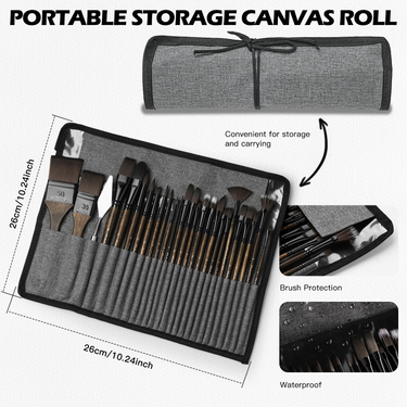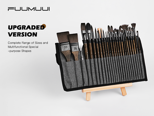 Fuumuui 26pcs Professional Paint Brush Set - Synthetic Nylon Paint Brushes for Acrylic, Oil, Watercolor, Gouache