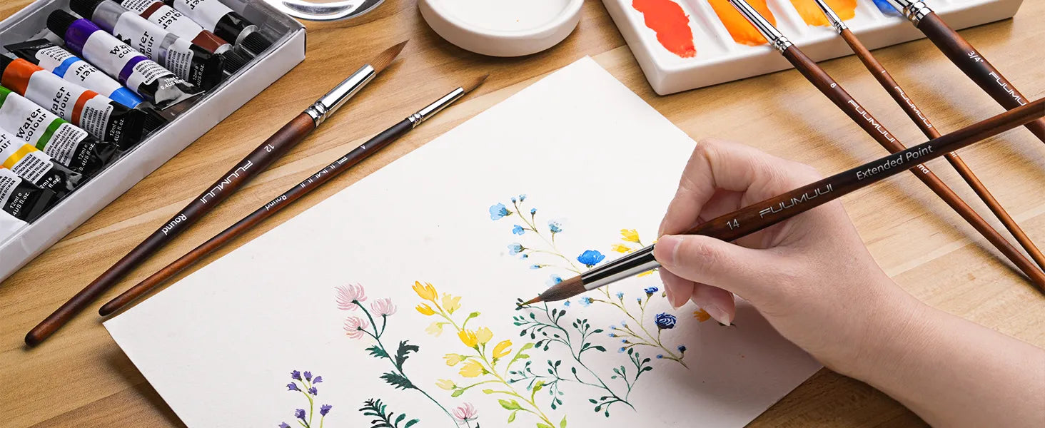 Fuumuui 9 pennelli professionali per acquerello, include pennello a punta ad ago e mop