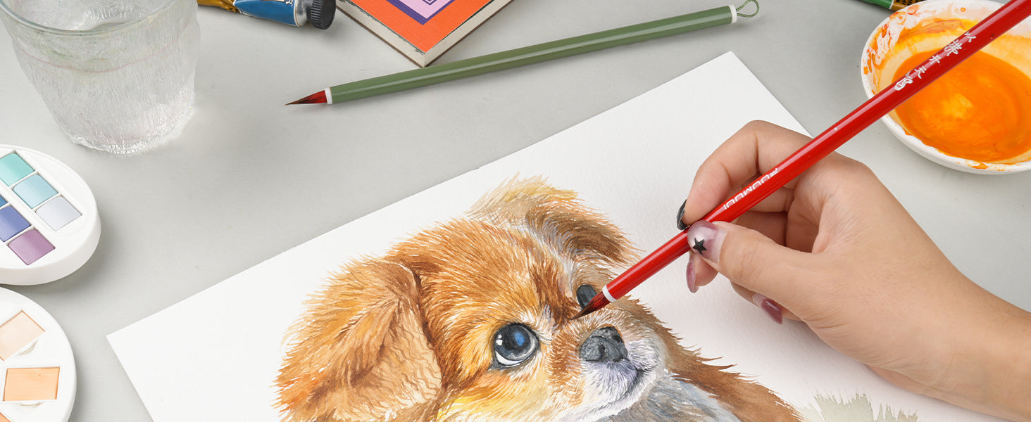 Pennello per acquerello FUUMUUI in pelo di capra rossa fatto a mano (manico rosso/verde) ¨C Eccellente assorbimento e flusso