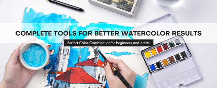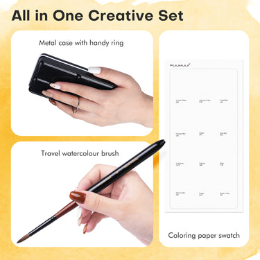 Set da viaggio per acquerello - 12 acquerelli con pennello e tavolozza da viaggio