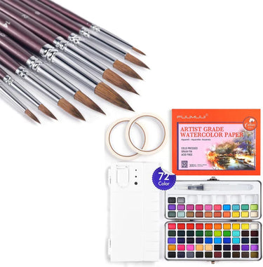 - 【하나의 프리미엄 세트에 필요한 모든 것】 하나의 포괄적인 세트에서 멋진 수채화 그림을 만드는 데 필요한 모든 도구를 갖춘 편리함을 누리십시오. 72가지 생생한 색상 외에도 이 프리미엄 페인트 세트에는 고품질 100% 면 수채화 용지 20장(5.8" x 8.3", 콜드 프레스), 브러시 펜, 아티스트 마스킹 테이프 2개, 수채화 팔레트가 포함되어 있습니다. 손쉬운 걸작 제작을 위해 편리하게 조립된 모든 창의적인 필수품을 발견하십시오.