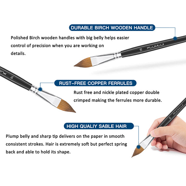 Fuumuui 4개입 전문가용 세이블 수채화 브러쉬