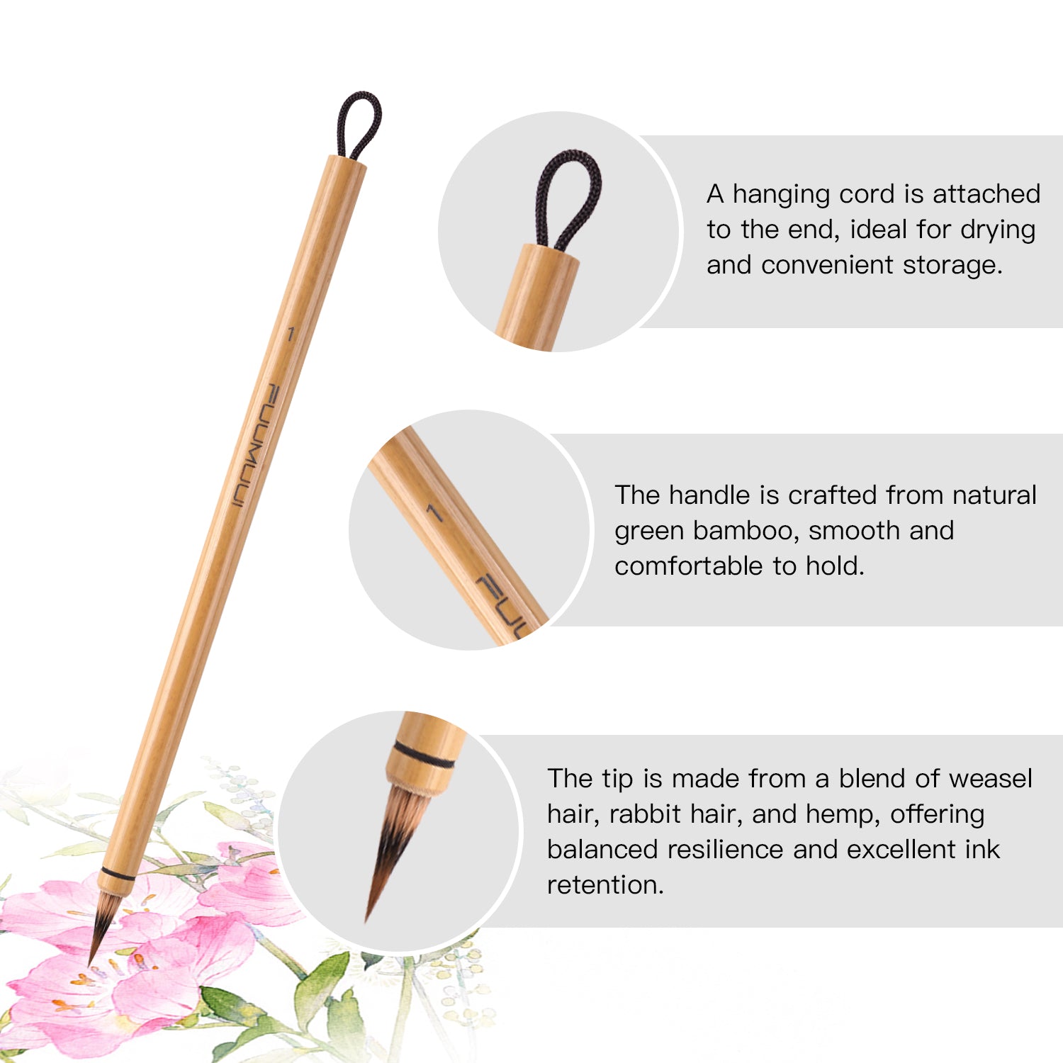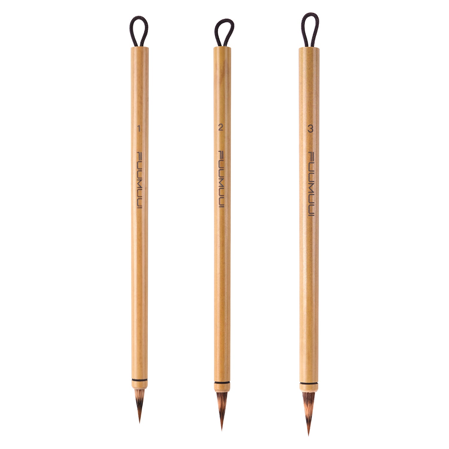 Fuumuui 3-Piece Watercolor Brush Set – Natural Weasel & Rabbit Hair Blend, Short Tip for Precision and Control