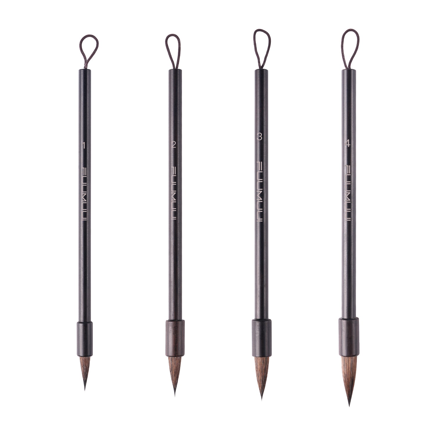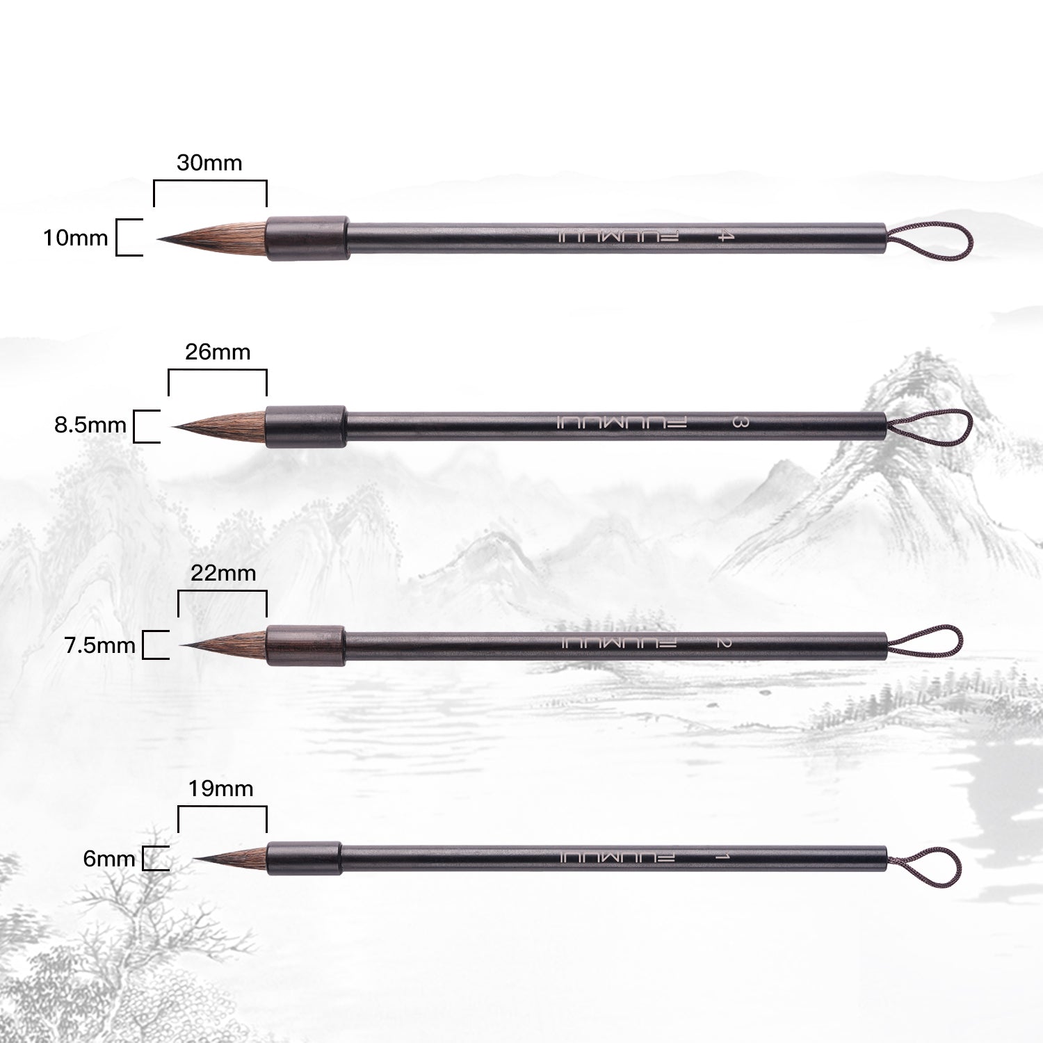 Fuumuui Squirrel Hair Calligraphy Brushes – Set of 4 with Hand-Polished Rosewood and Durable Flat-End Hanging Design