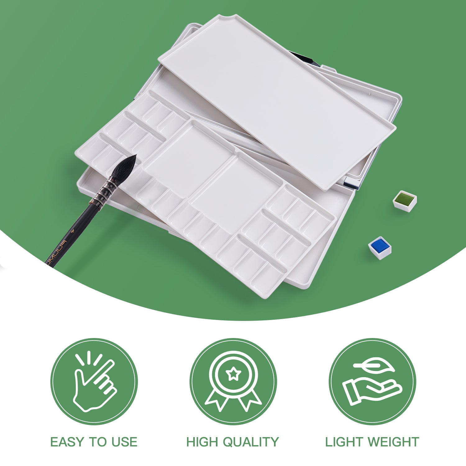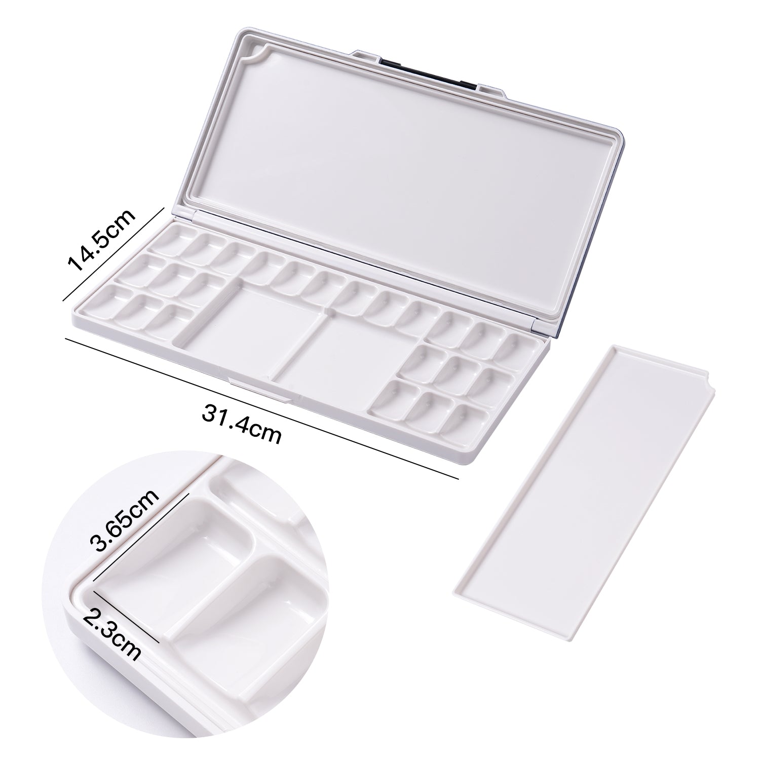 Crafted from durable yet lightweight plastic, this palette is ideal for artists on the go. Whether you're painting at home, in the studio, or outdoors, its compact and portable design ensures that your materials are always within reach. The sturdy locking clasp keeps the lid tightly closed during transport, protecting your paints from spills, leaks, and unwanted messes.