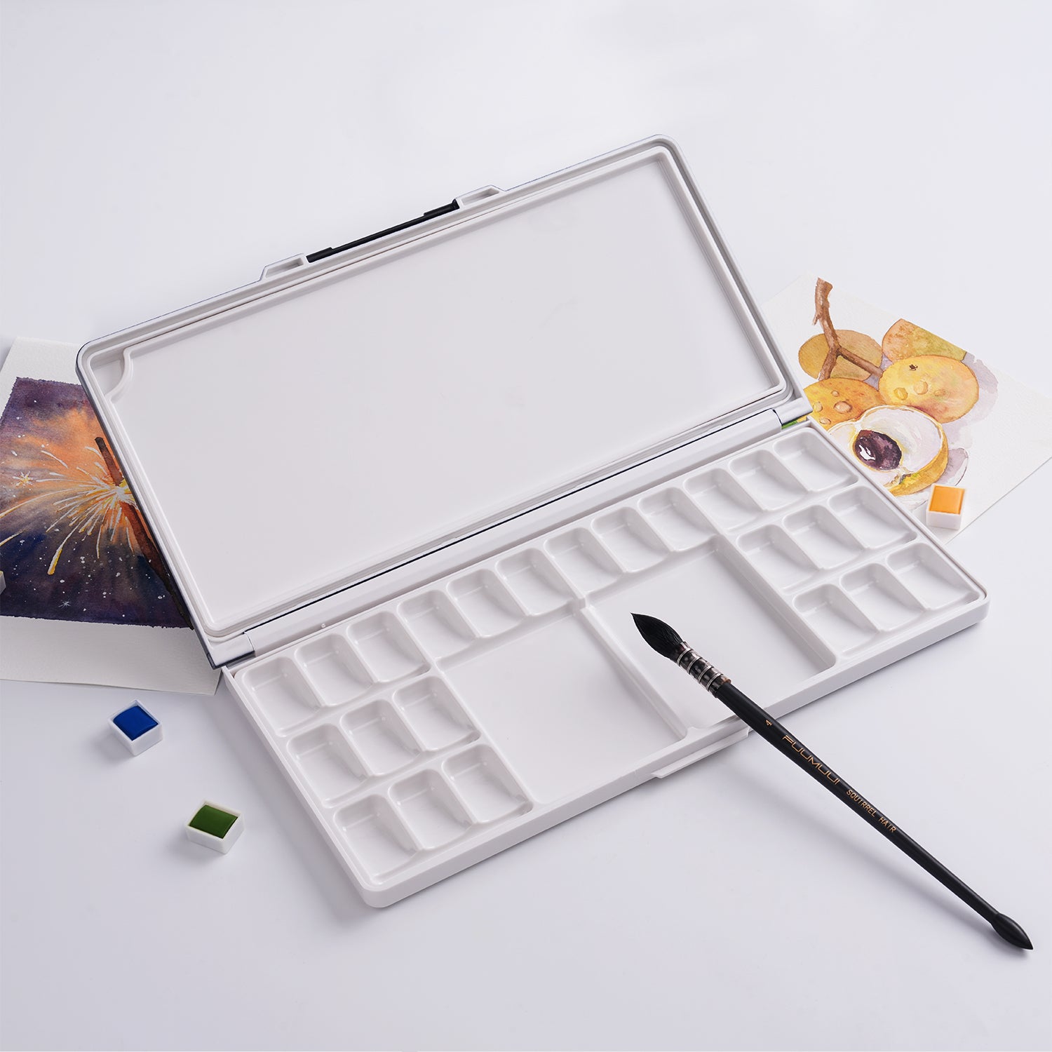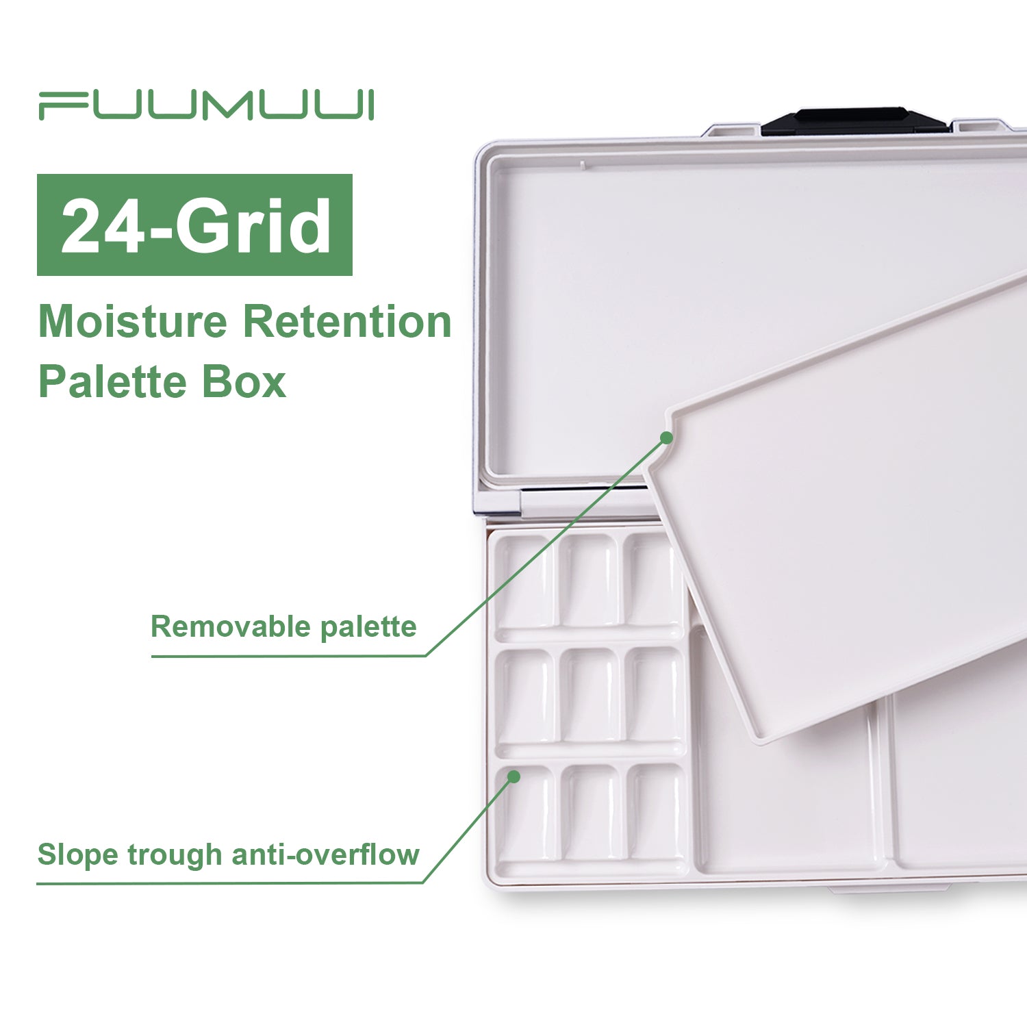 The Fuumuui Airtight 24-Well Watercolor Palette is thoughtfully designed to bring convenience, organization, and inspiration to artists of all levels. Featuring 24 individual paint wells, it offers ample space to keep your colors neatly separated and easily accessible. In addition, the palette includes two generously sized mixing areas, giving you plenty of room to blend, experiment, and create with confidence.