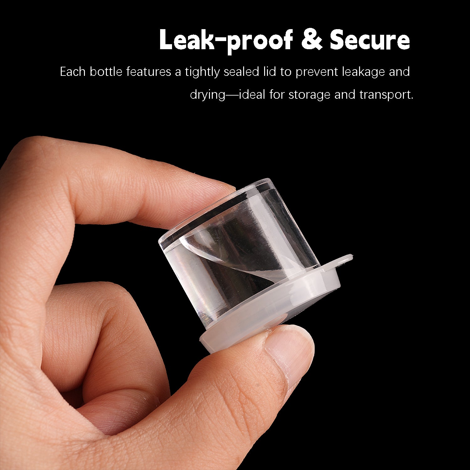 The palette features 12 individual mini paint jars, each with its own secure, leak-proof lid. These small clear containers are perfect for storing pre-mixed colors, leftover paint, or small amounts of custom blends. The lids are designed to snap tightly into place to prevent spills, evaporation, or contamination. No more worrying about dried-out paint or messy cleanups — your colors stay fresh and ready for your next session.