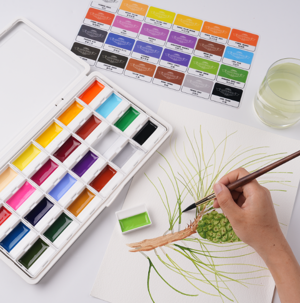 Fuumuui 24-Color Opaque Semi-Moist Watercolor Set – High-Saturation Bright Colors with Strong Coverage and Rich Pigments
