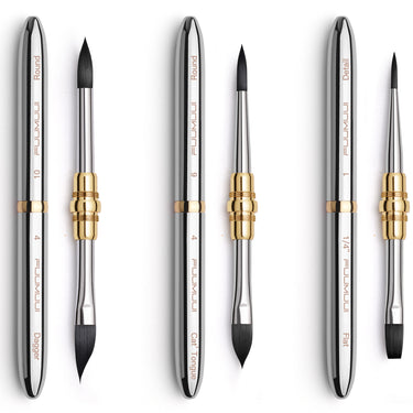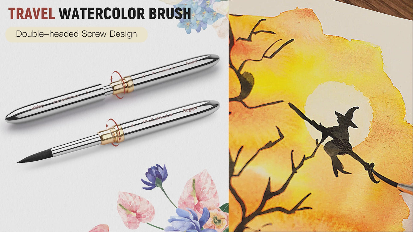 3pcs Small Dual-Tip Silver Travel Watercolor Brushes - 6 Tip Styles,Premium Synthetic Squirrel Hair