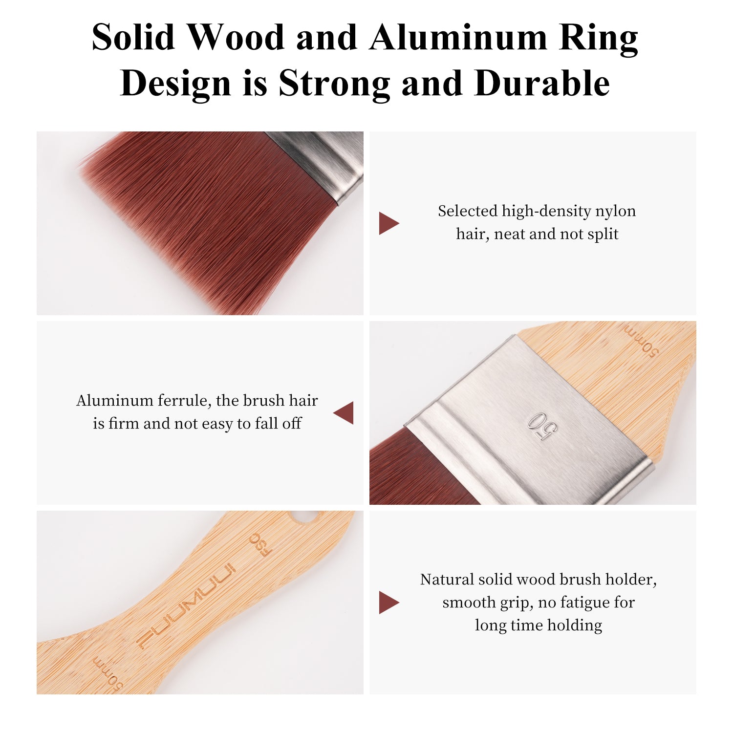 Fuumuui 2pcs Large Nylon Flat Brushes for Watercolor, Acrylic & Oil Painting