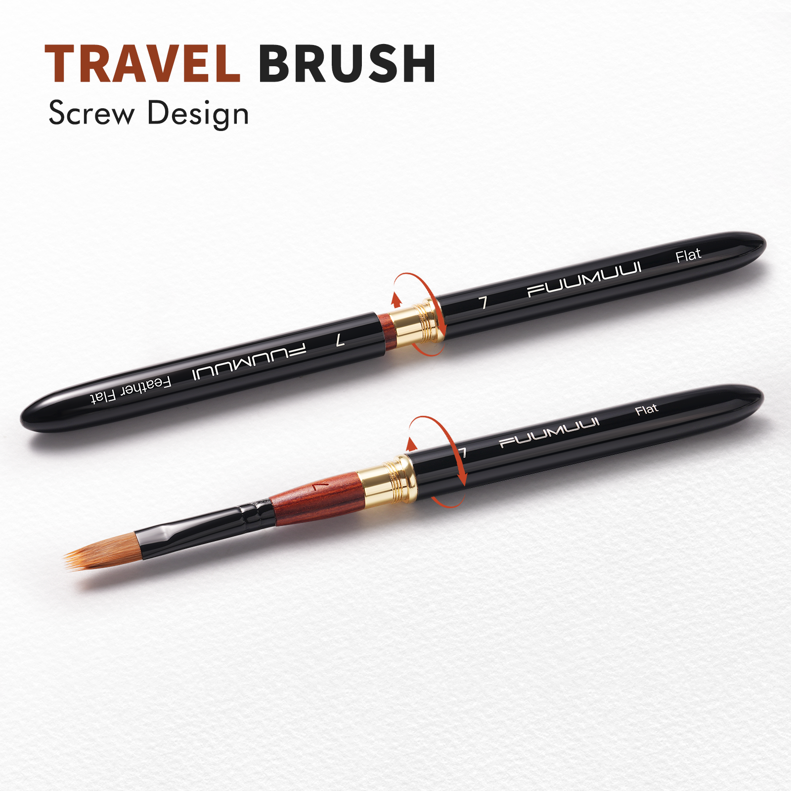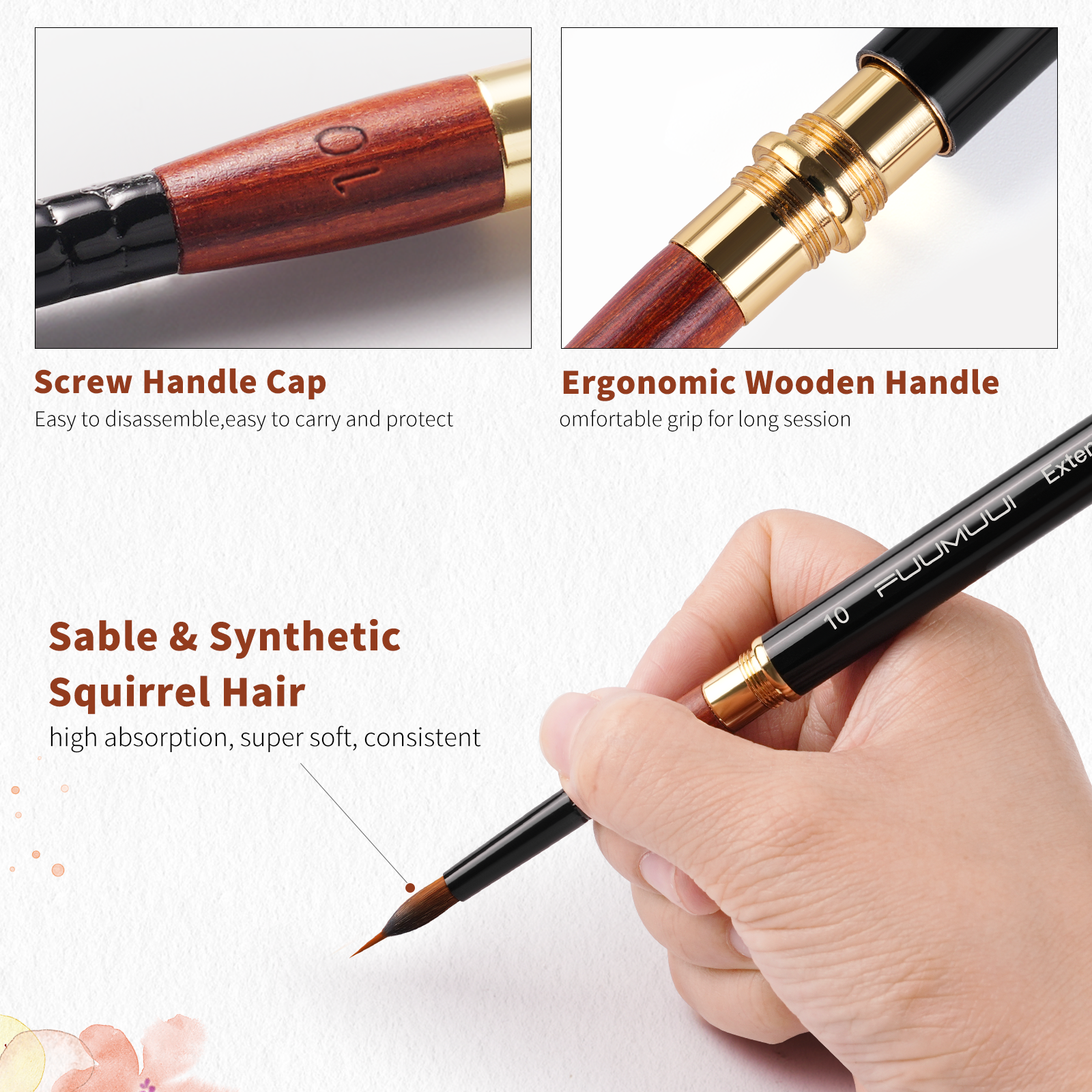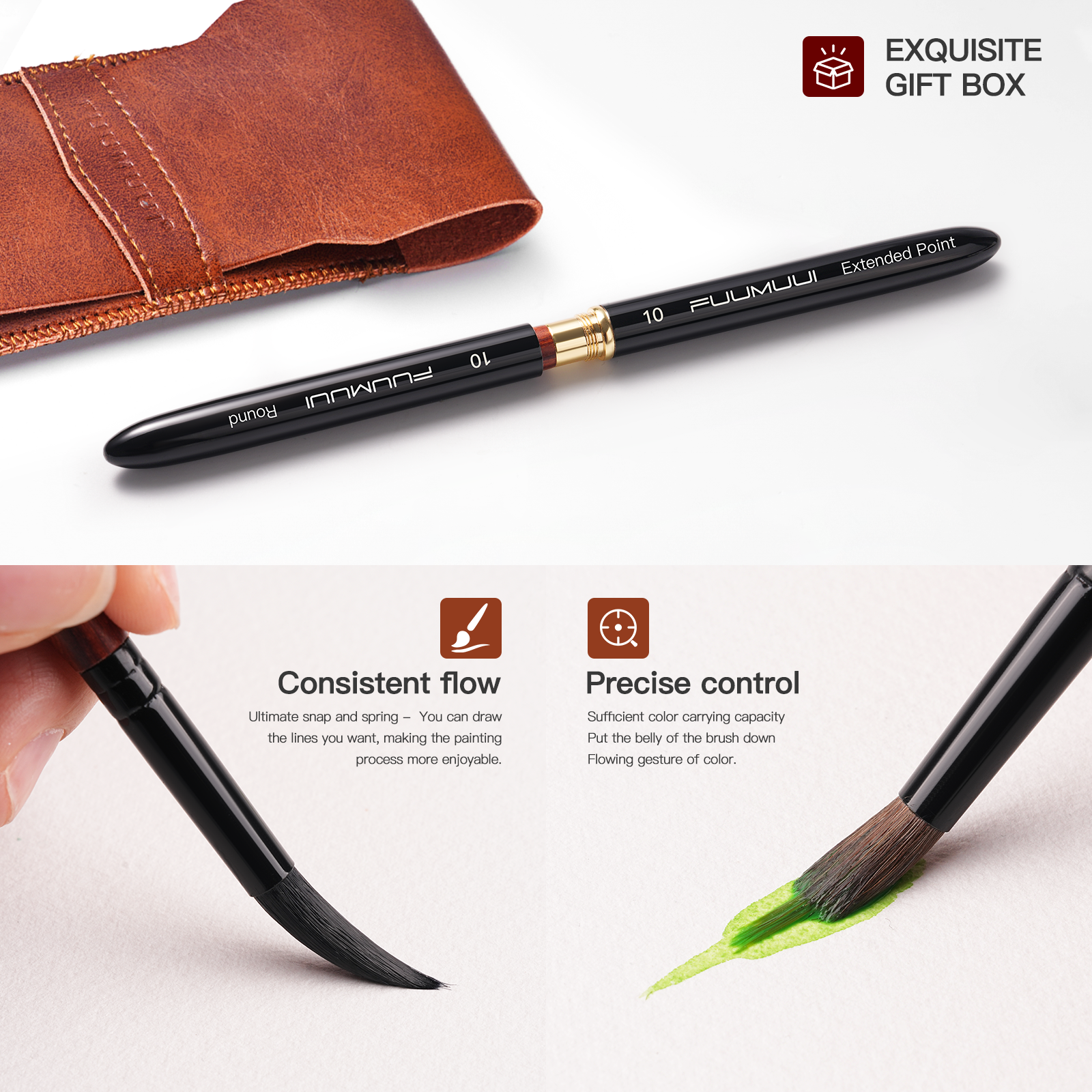 Fuumuui 3pcs Dual-Tip Synthetic Travel Watercolor Brush Set with Leather Pouch – 6 Shapes for Watercolor & Gouache