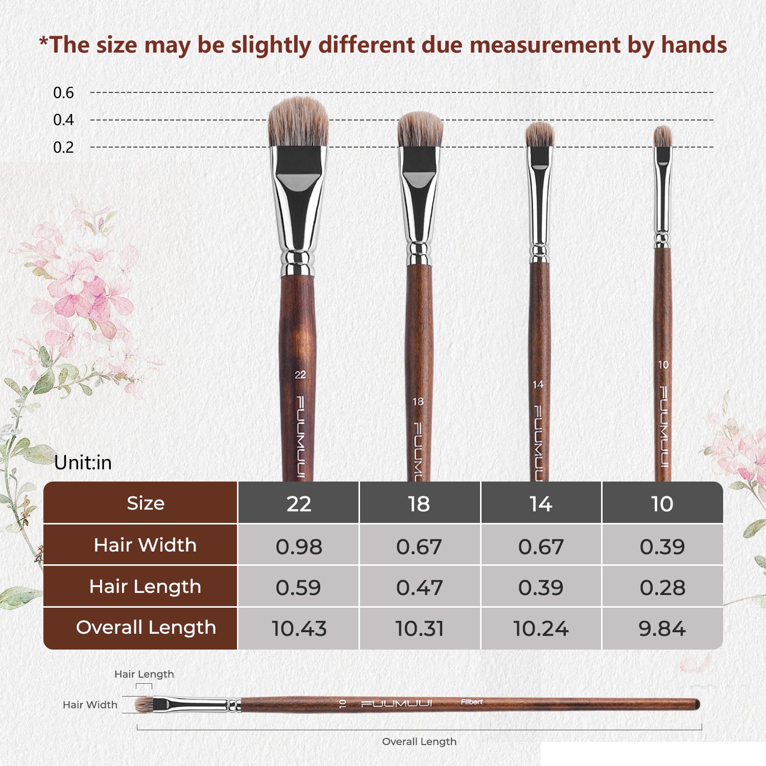 FUUMUUI 4pcs Badger Hair Filbert Brush Set | Brown Wooden Handle for Oil & Acrylic Painting