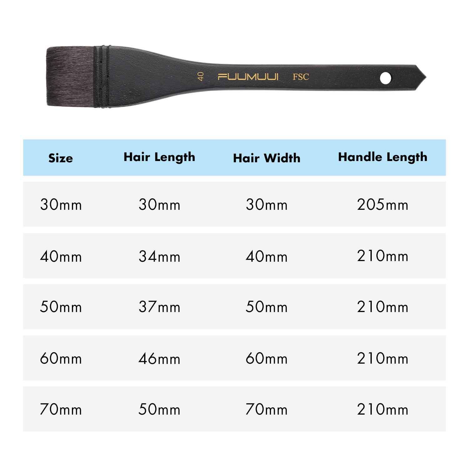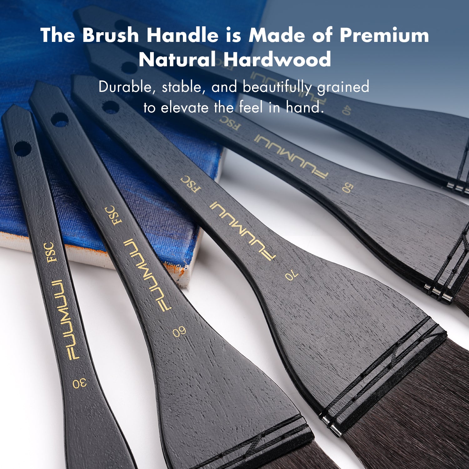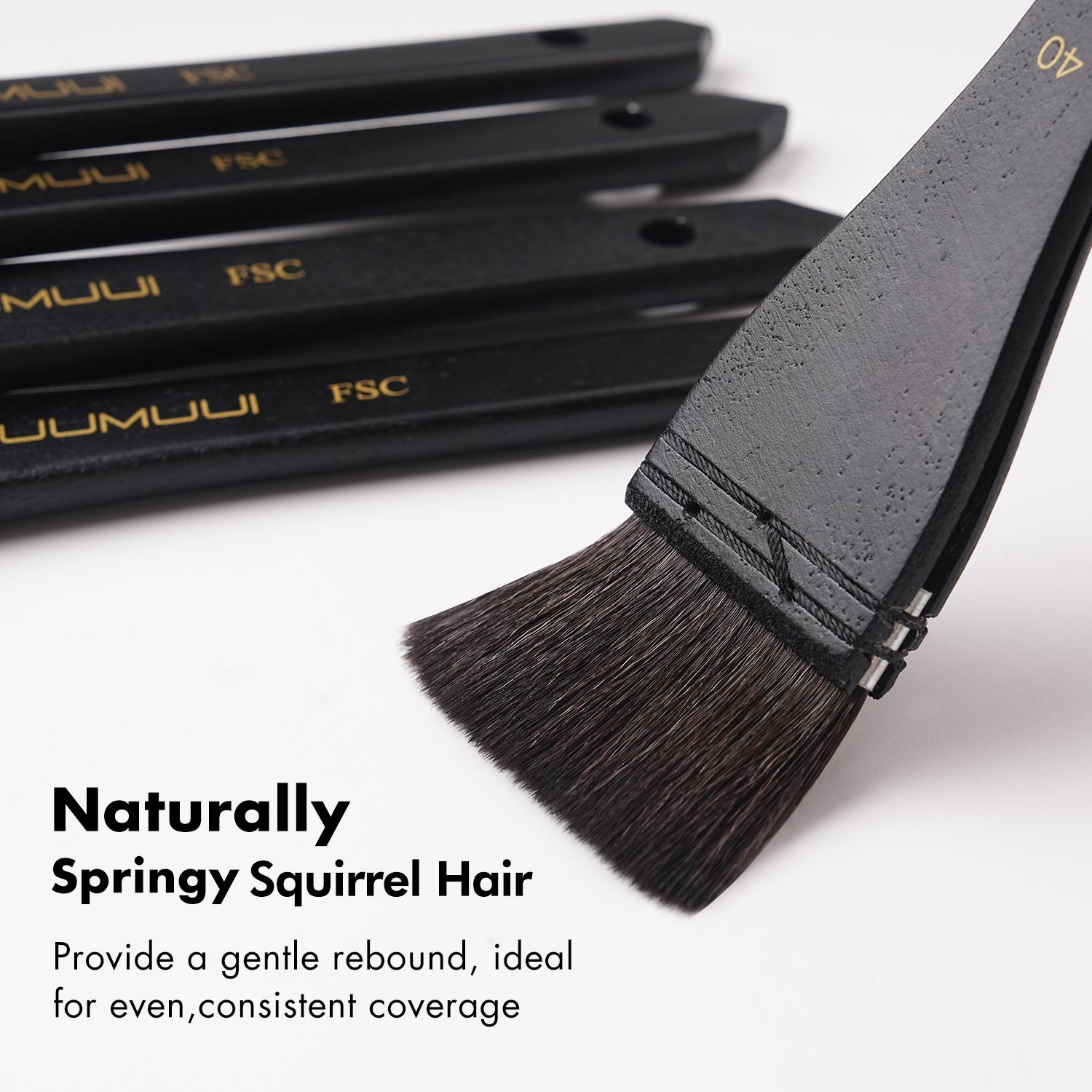 Fuumuui 5pcs Squirrel Hair Hake Brushes Flat Watercolor Brushes