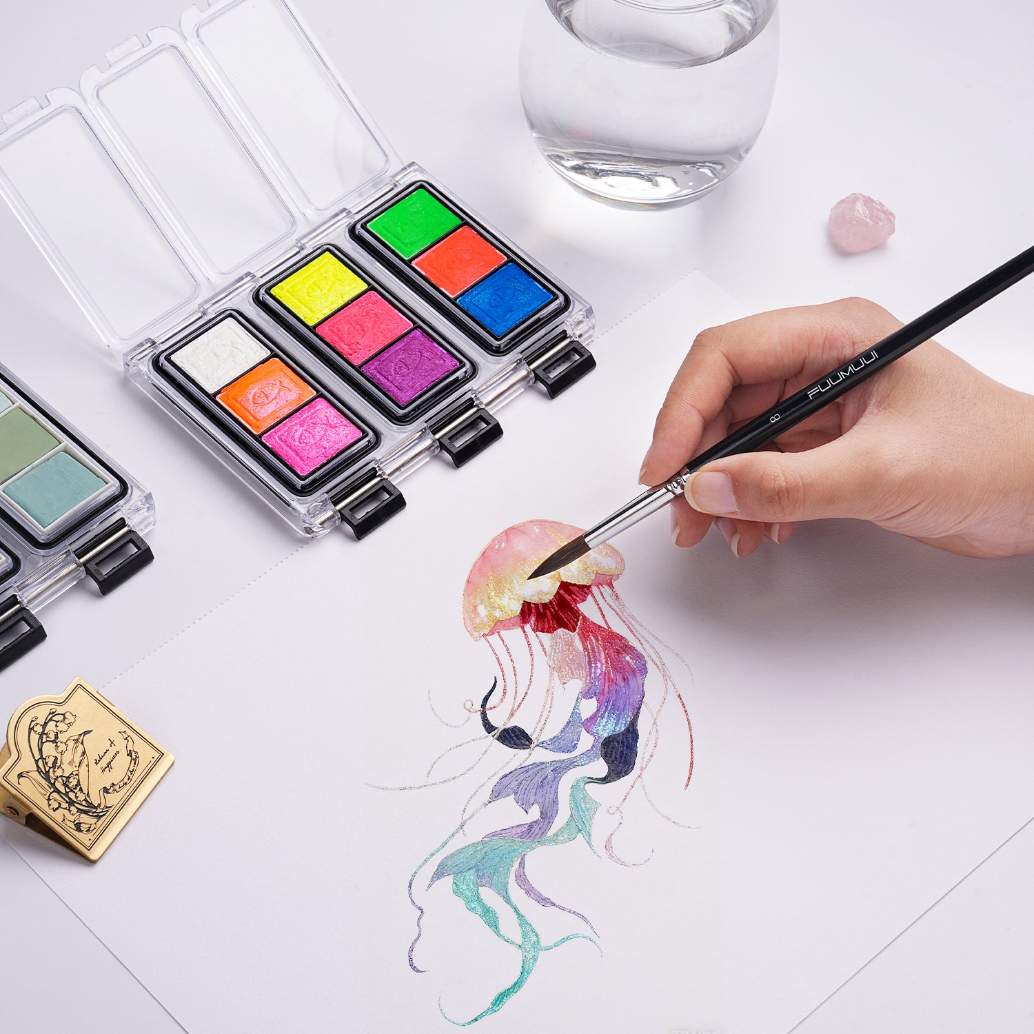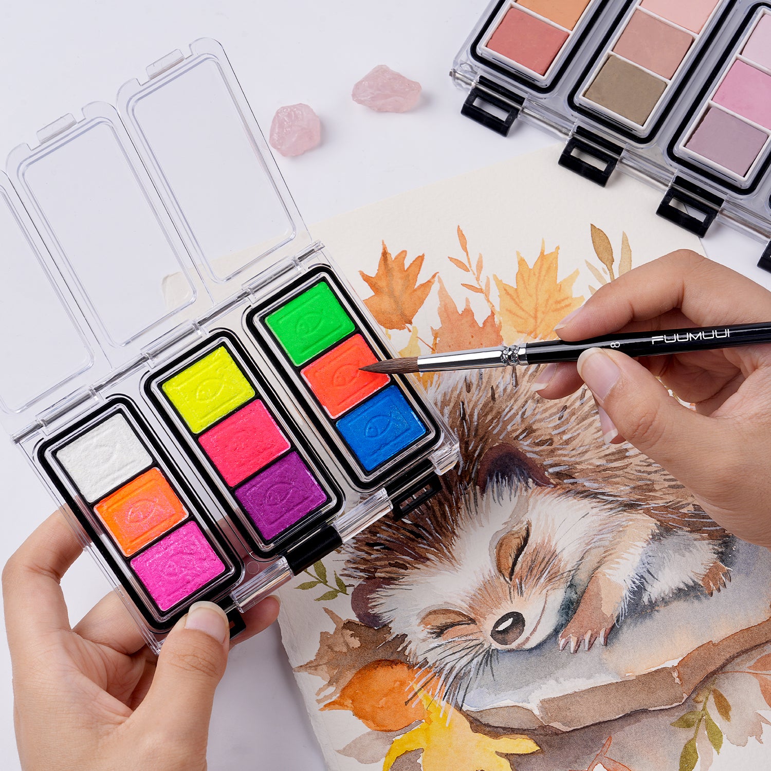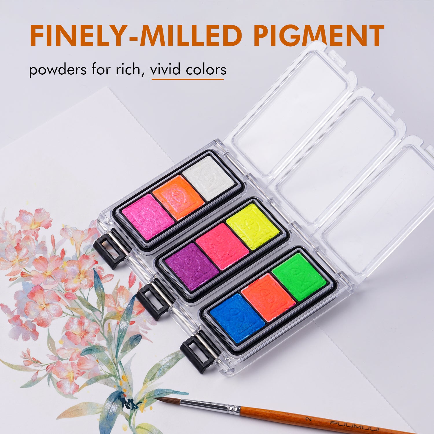Fuumuui 9-Color Watercolor Powder Set – High Water Solubility, Travel-Friendly, Perfect for Illustration, Journaling