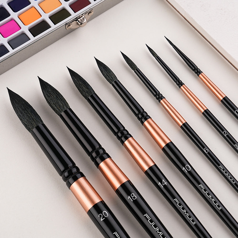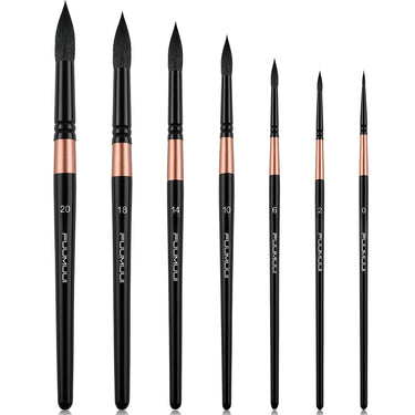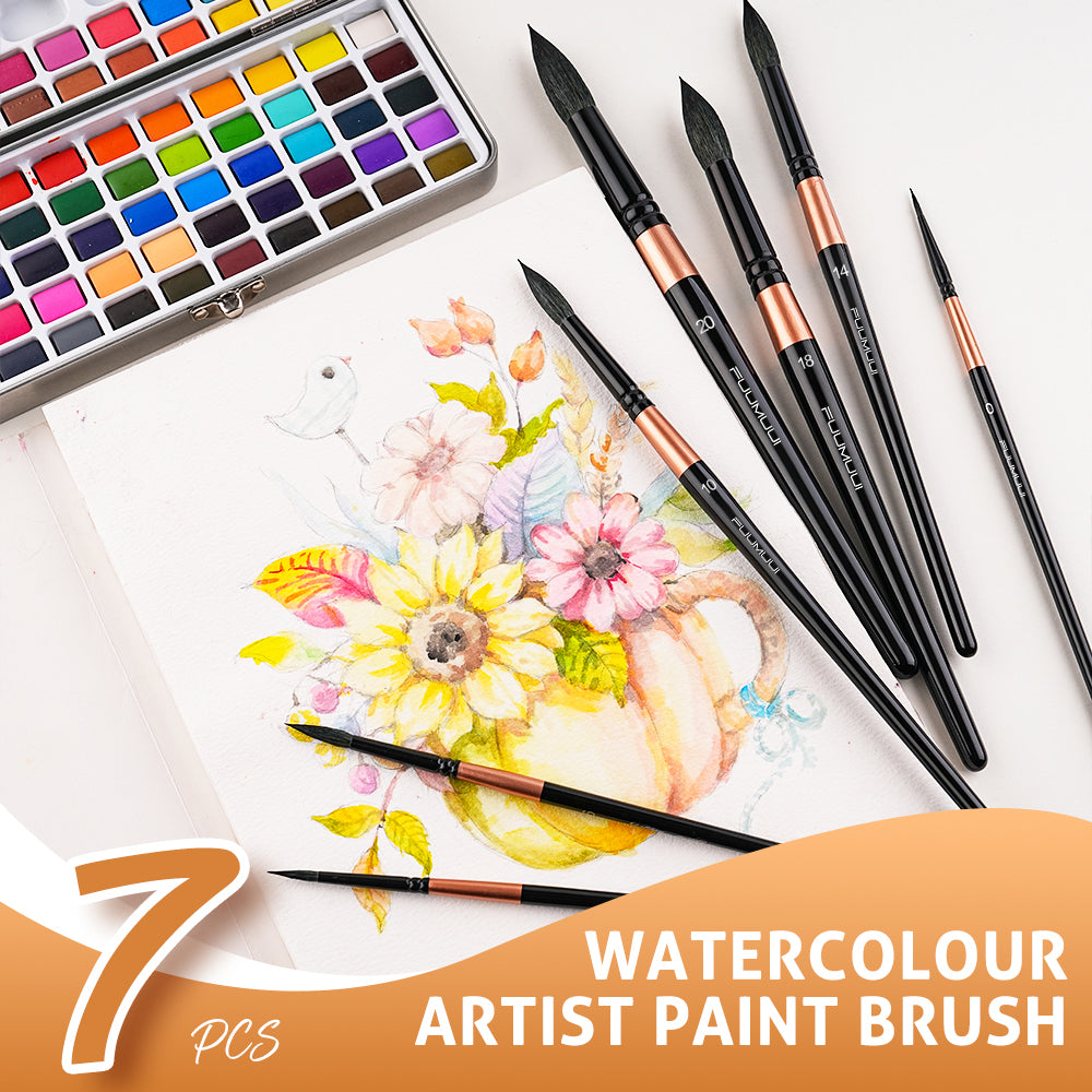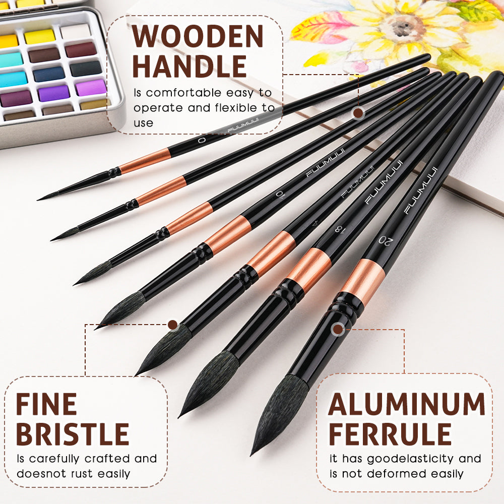 Fuumuui 7pcs Professional Sable Watercolor Brushes