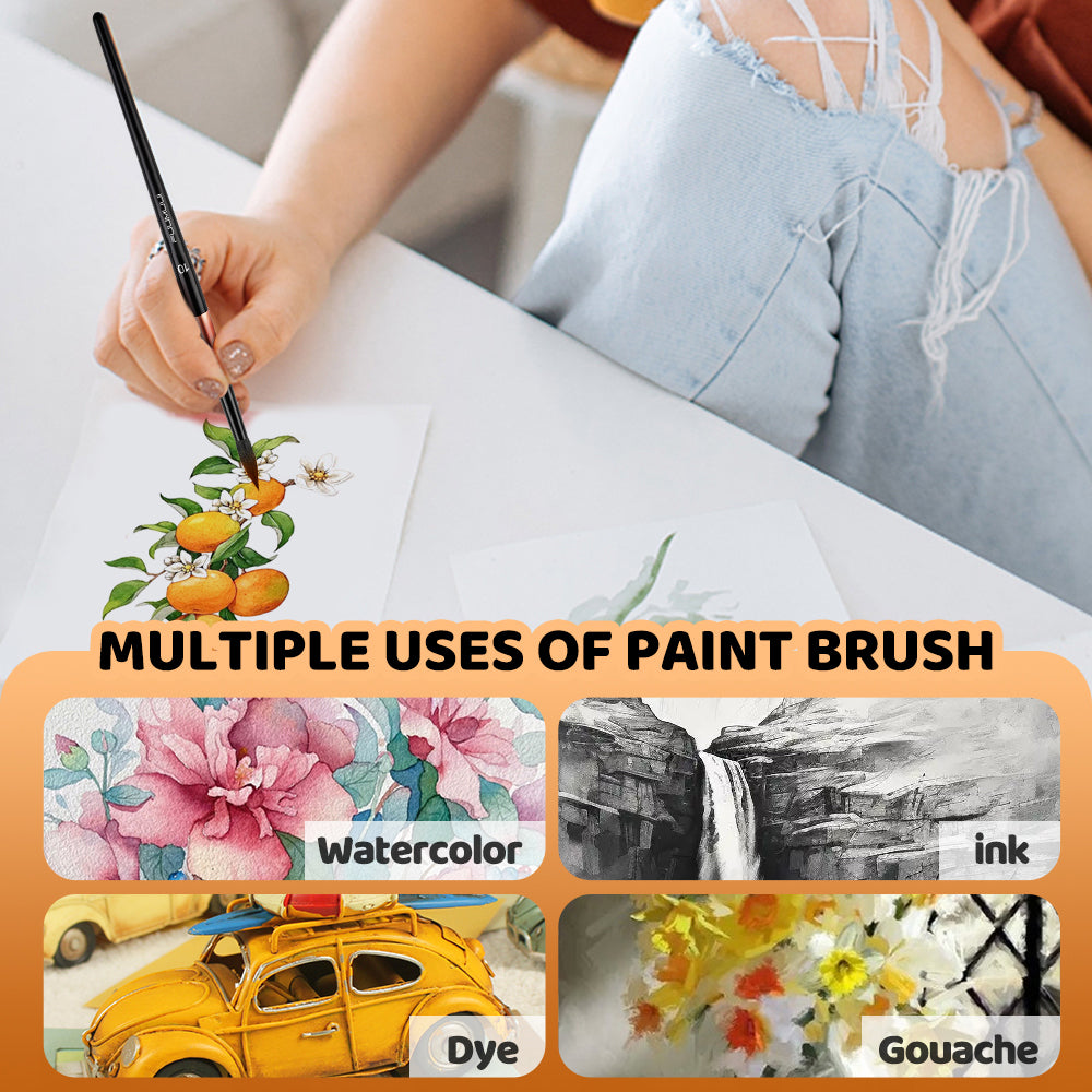VERSATILE PAINTBRUSH SET: These paint brushes are ideal for watercolor, Inks, dyes & gouache painting, great gift for your kids, friends, beginners, artists or anyone who have interest in painting.