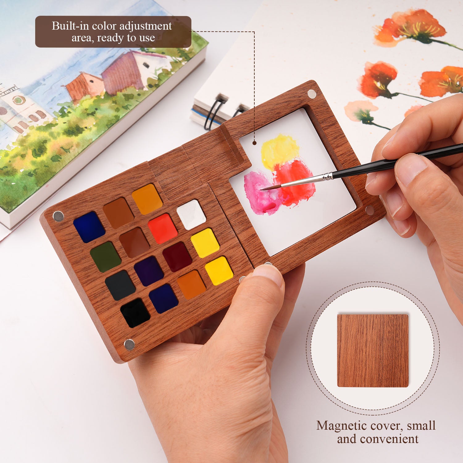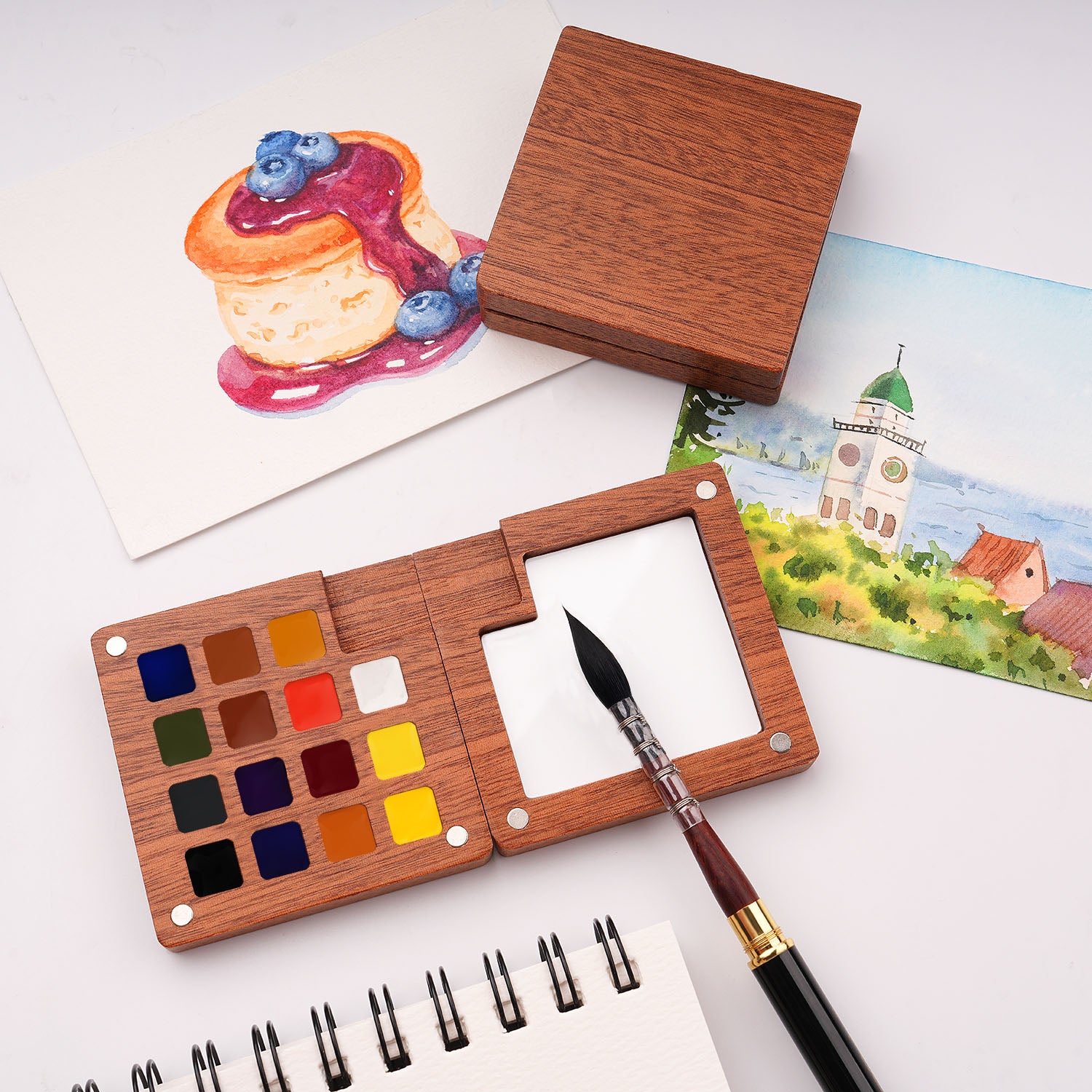 Fuumuui Premium Wood Watercolor Set – 15 Handpicked Colors with Built-in Mixing Palette
