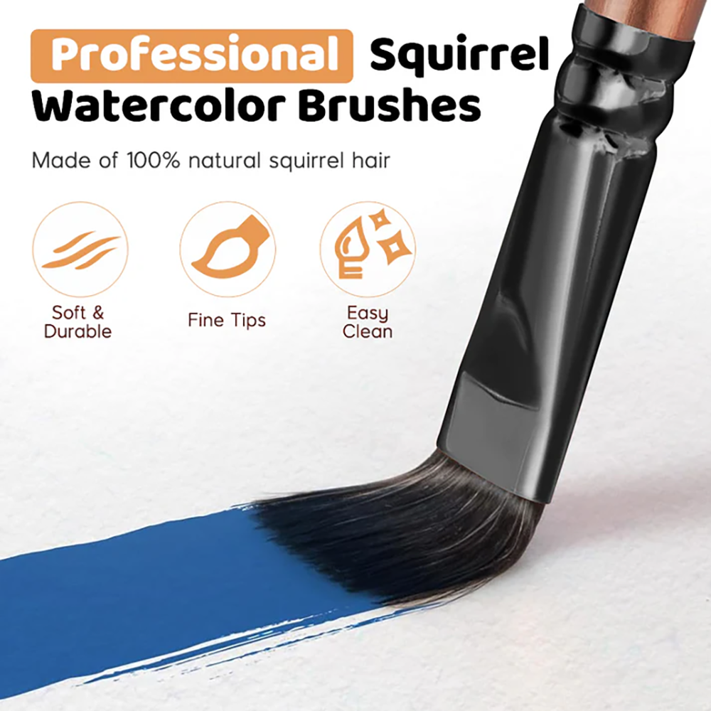 This squirrel bristles drinks up pigment and holds water to deliver color with each beautifully creative stroke.Our soft premium synthetic Nylon hair brushes offer a superior level of dexterity and control in your painting. Whether you're a seasoned professional, or just learning to paint, you deserve these durable and affordable watercolor brushes.