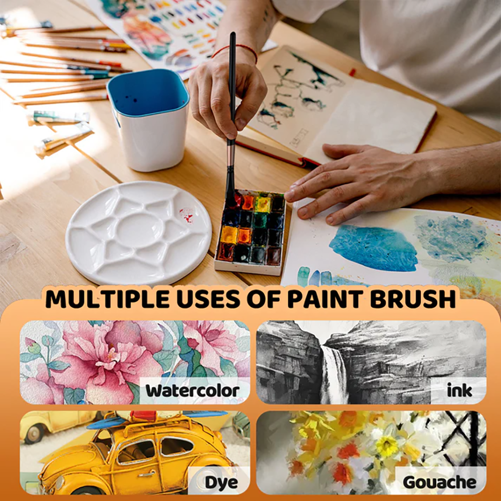 VERSATILE PAINTBRUSH SET: These paint brushes are ideal for watercolor, Inks, dyes & gouache painting, great gift for your kids, friends, beginners, artists or anyone who have interest in painting.