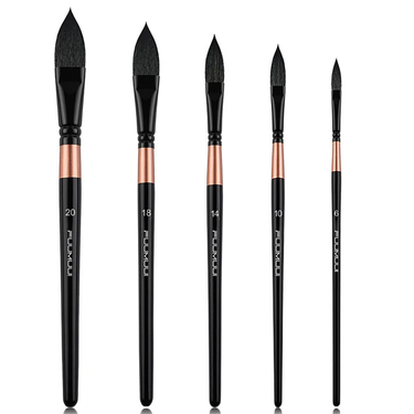 Fuumuui 5pcs Professional Natural Squirrel Hair Watercolor Brushes