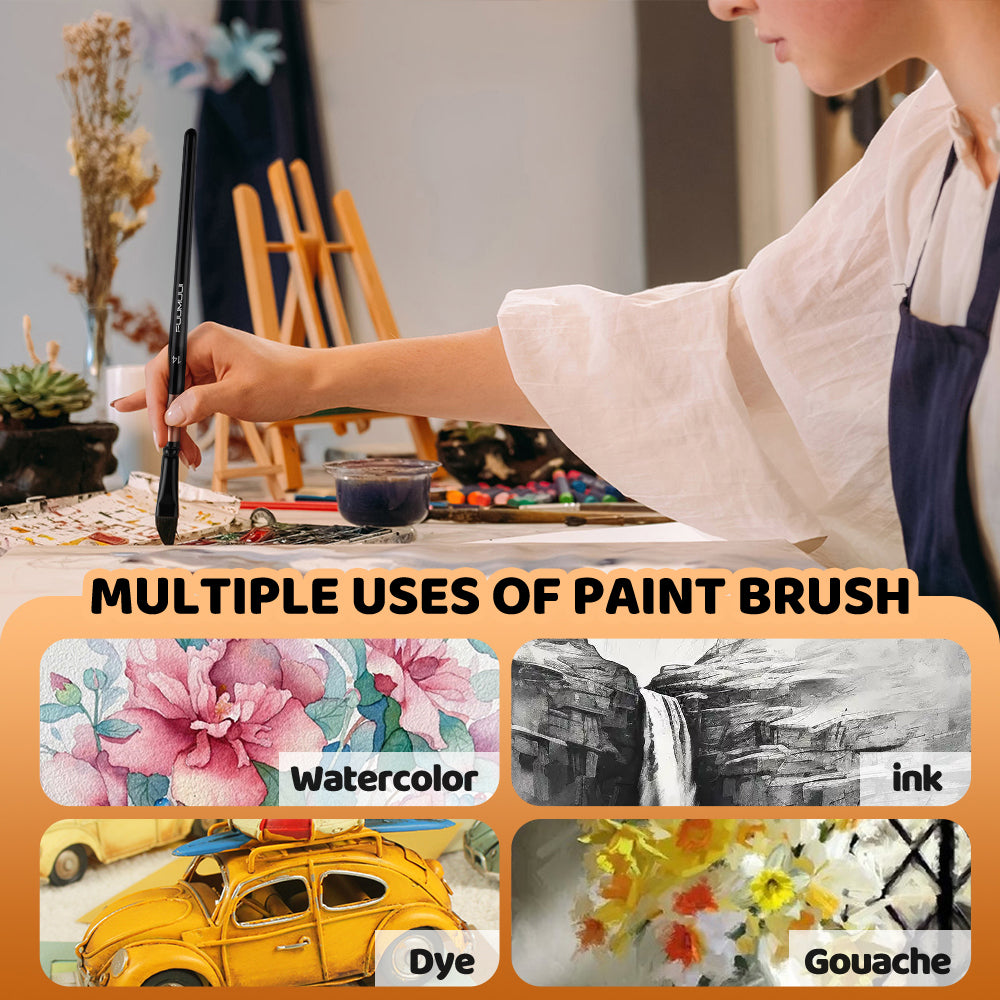 VERSATILE PAINTBRUSH SET: These paint brushes are ideal for watercolor, Inks, dyes & gouache painting, great gift for your kids, friends, beginners, artists or anyone who have interest in painting.