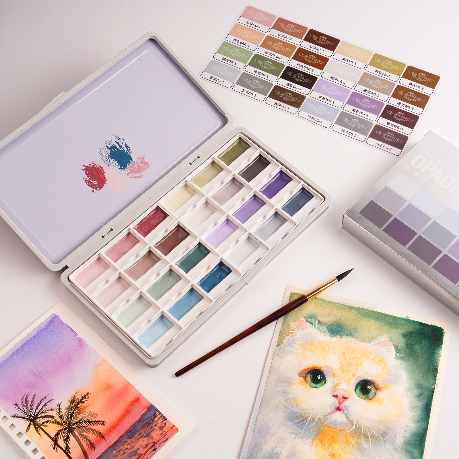 Fuumuui 24-Color Opaque Semi-Moist Watercolor Paint Set