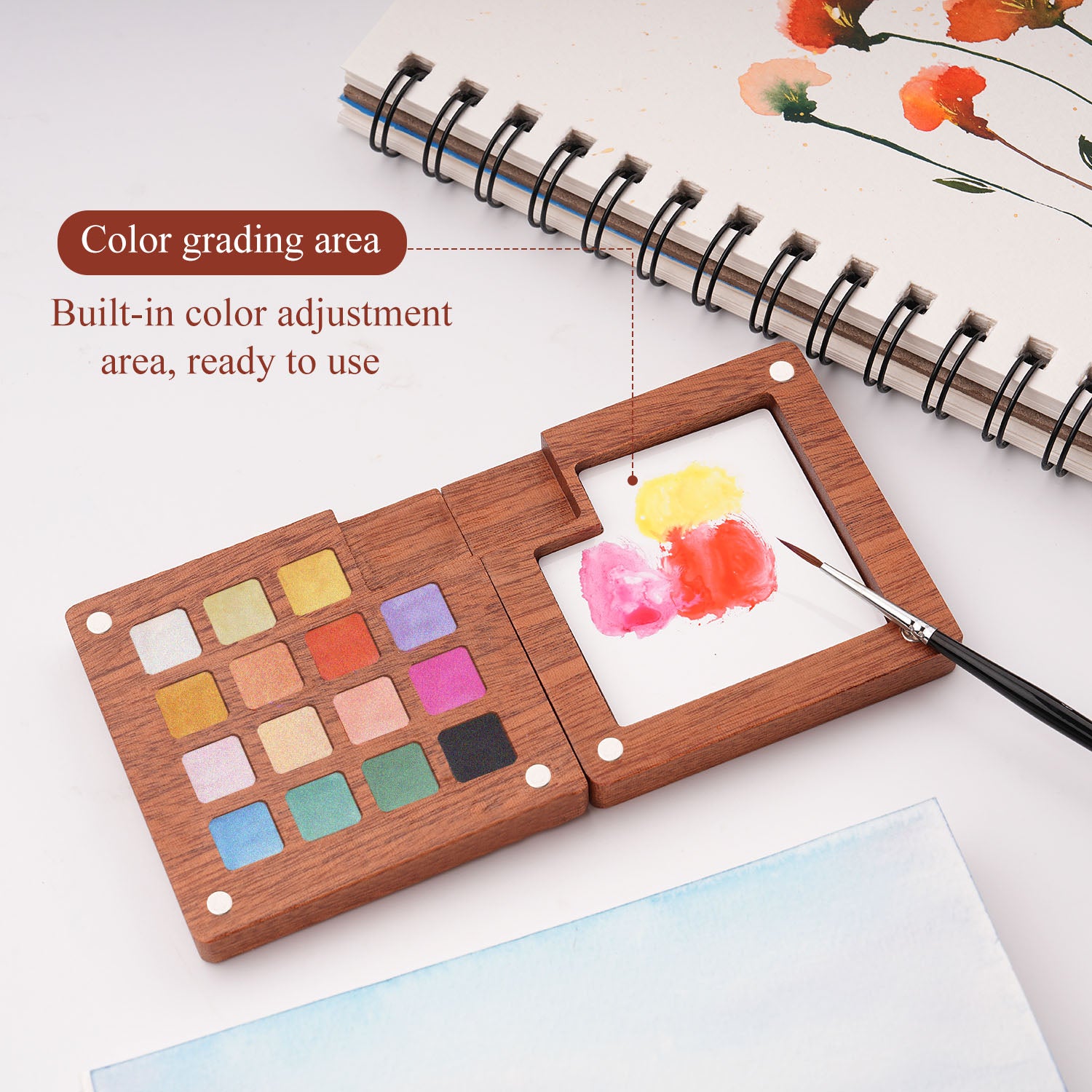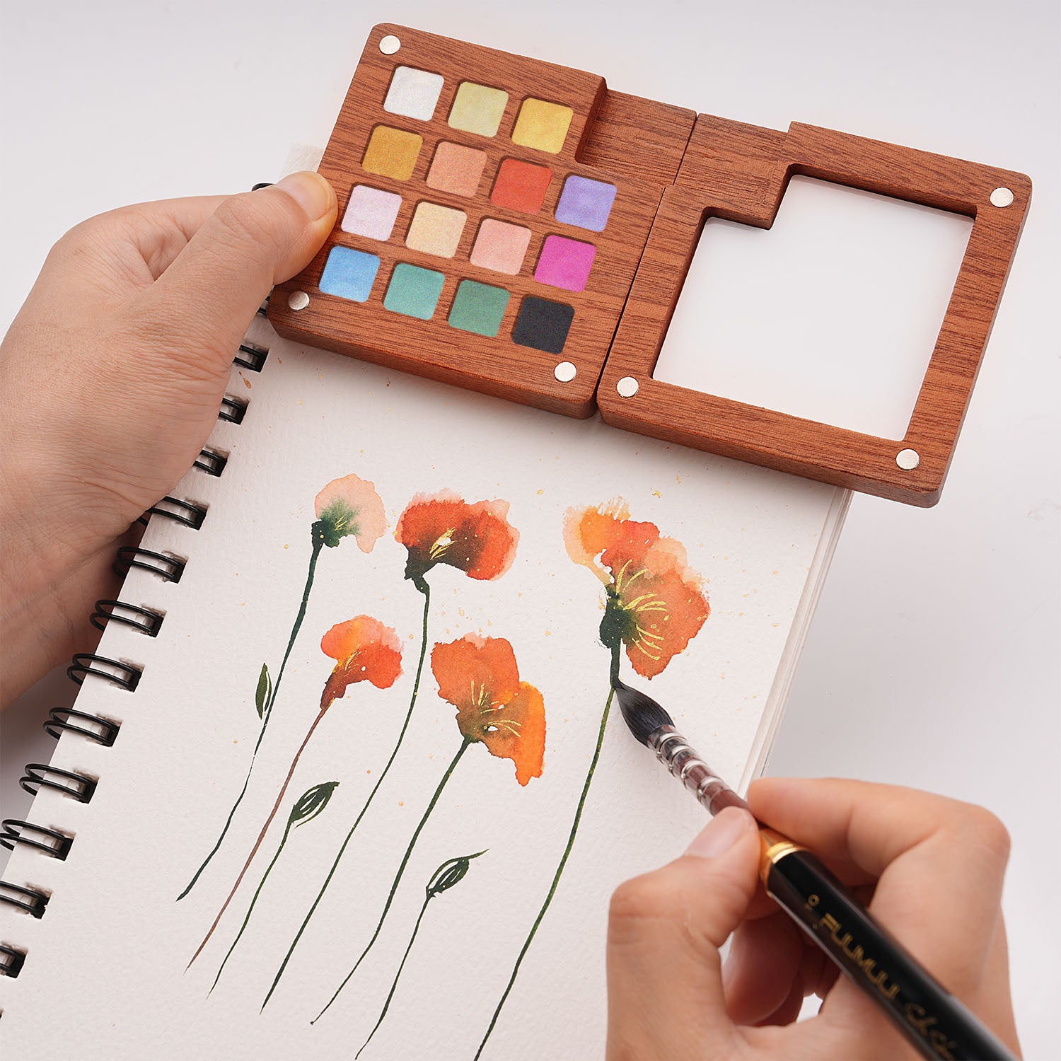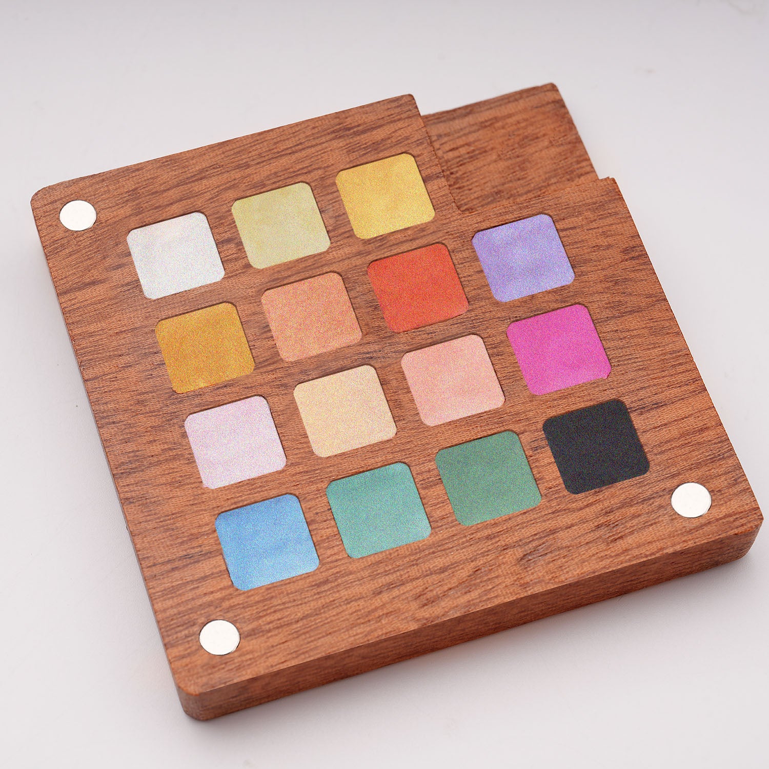 Fuumuui Pearlescent Watercolors – 15 Iridescent Colors in Magnetic Wooden Palette